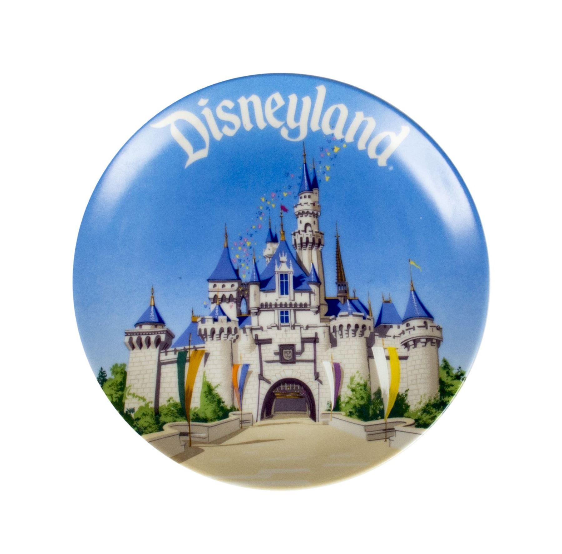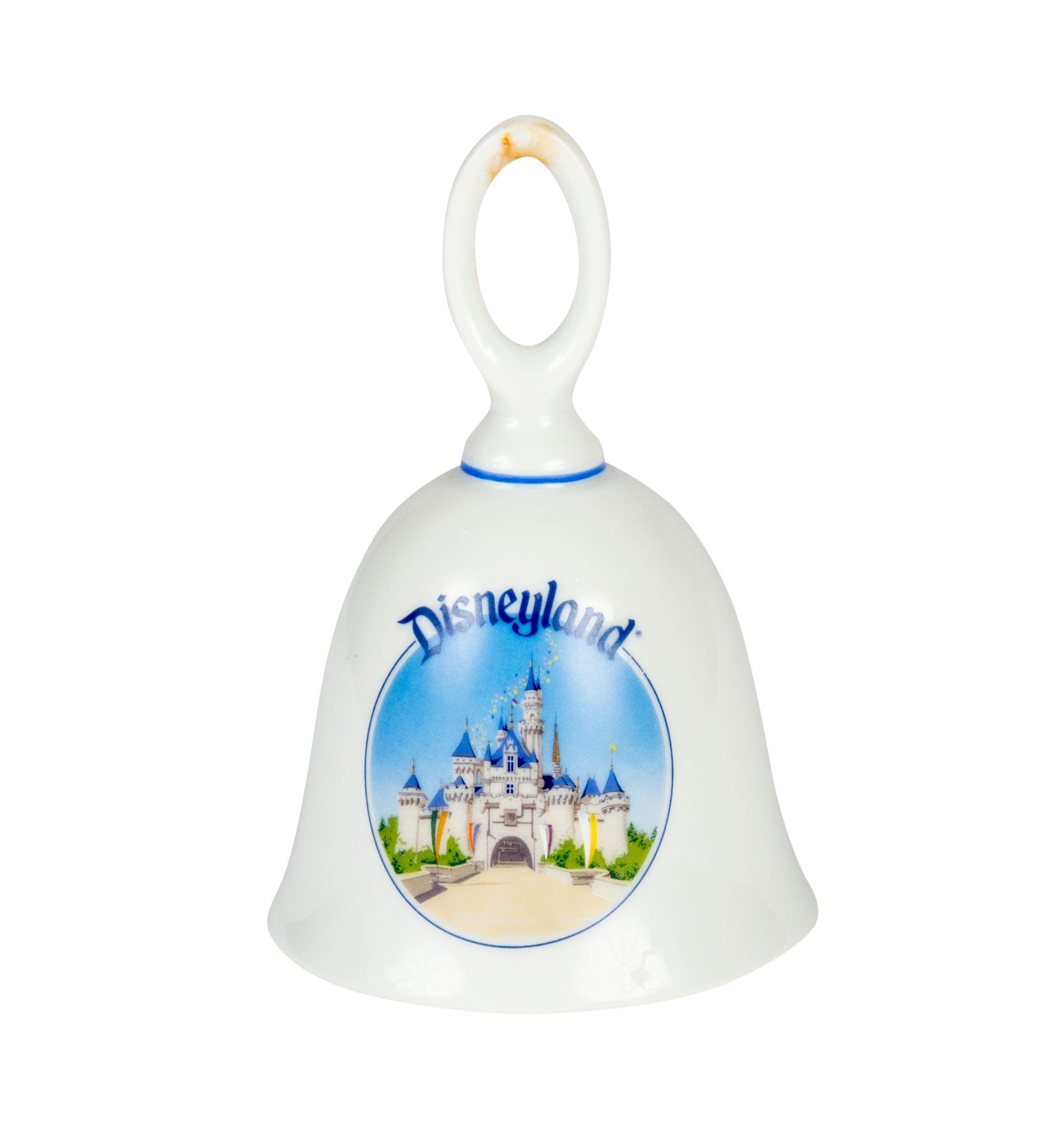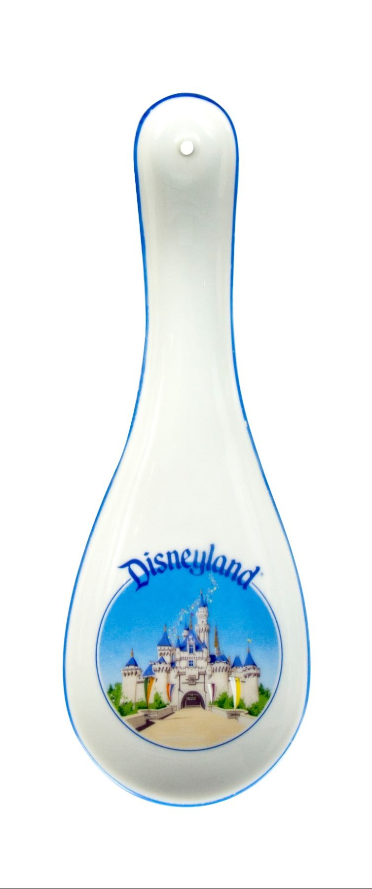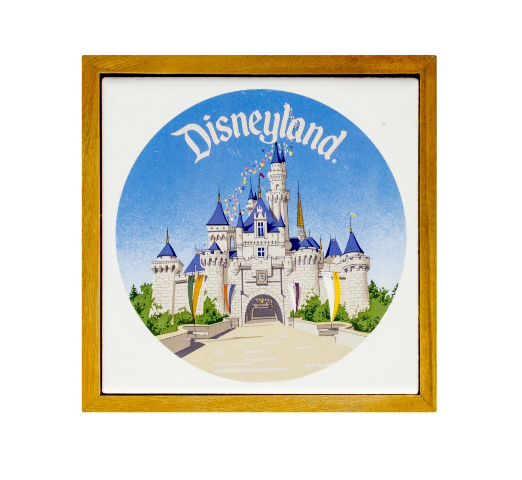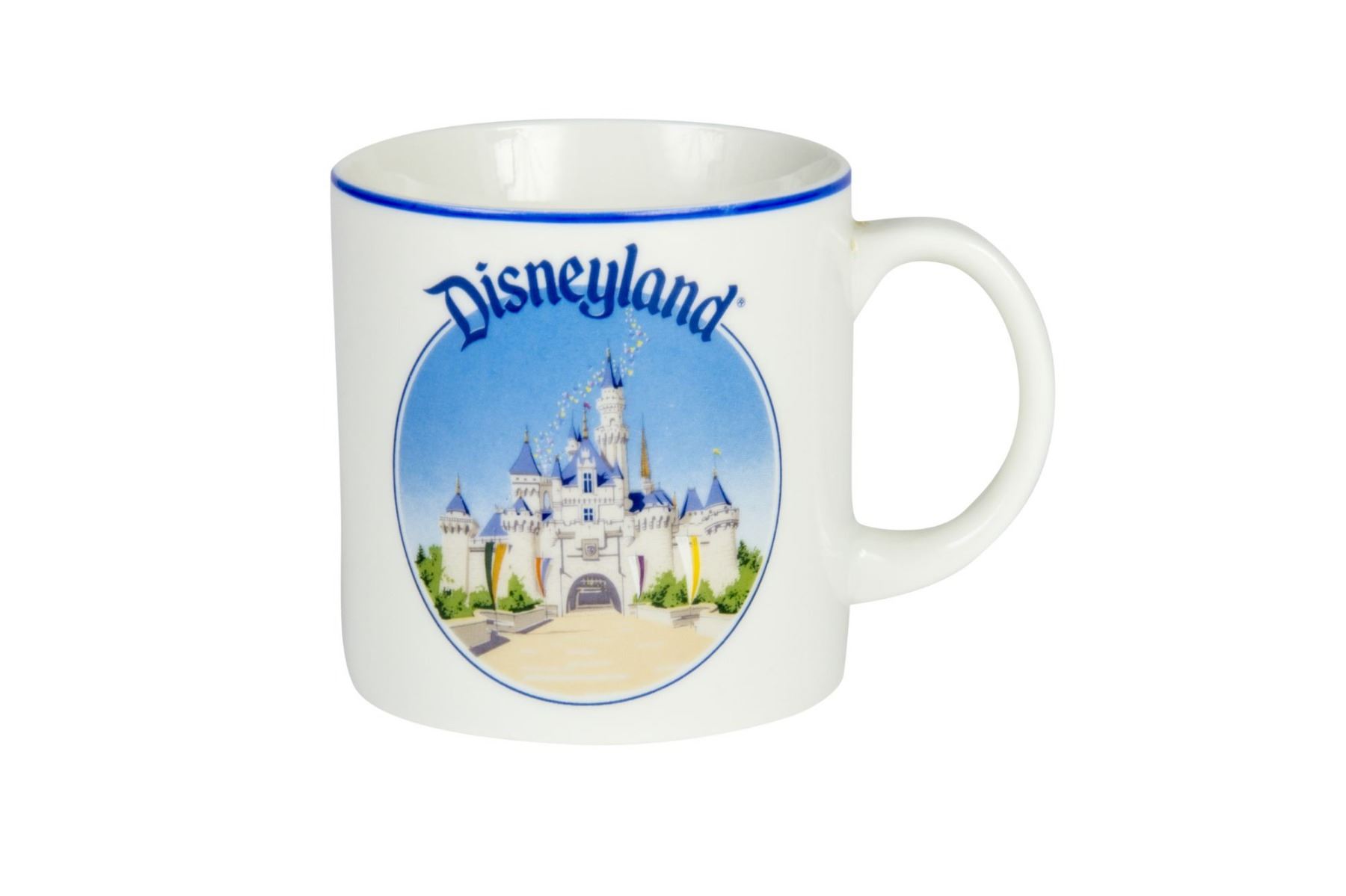 (Disneyland, c.1980s) A beautiful 14-piece ceramic set featuring matching Sleeping Beauty Castle imagery. The set includes a trivet, small plate, medium plate, salt & pepper shakers, two coffee cups, two small creamer cups, spoon rest, cup and saucer, bell, and bud vase. The ceramic set is in overall very good condition with some spots of scattered wear from light use.