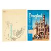 (Disneyland, 1957) A Disneyland souvenir guidebook from 1957. The book provides full-color photos, maps, and illustrations for the various lands and attractions of the park. Incredibly, the original unused mailing envelope is still included. The 27-page book measures 11.5"x8.25" and is in fair condition with edge wear and creasing in the spine as well as moderate creasing and handling wear to the envelope.