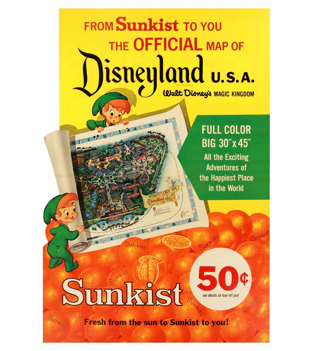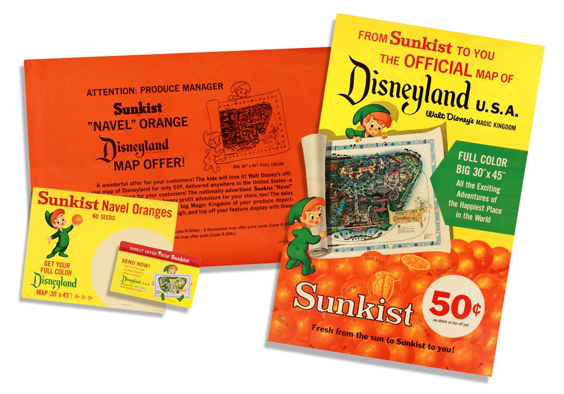 1962 DIsneyland, USA - SUNKIST PARK MAP Promotional Display Kit