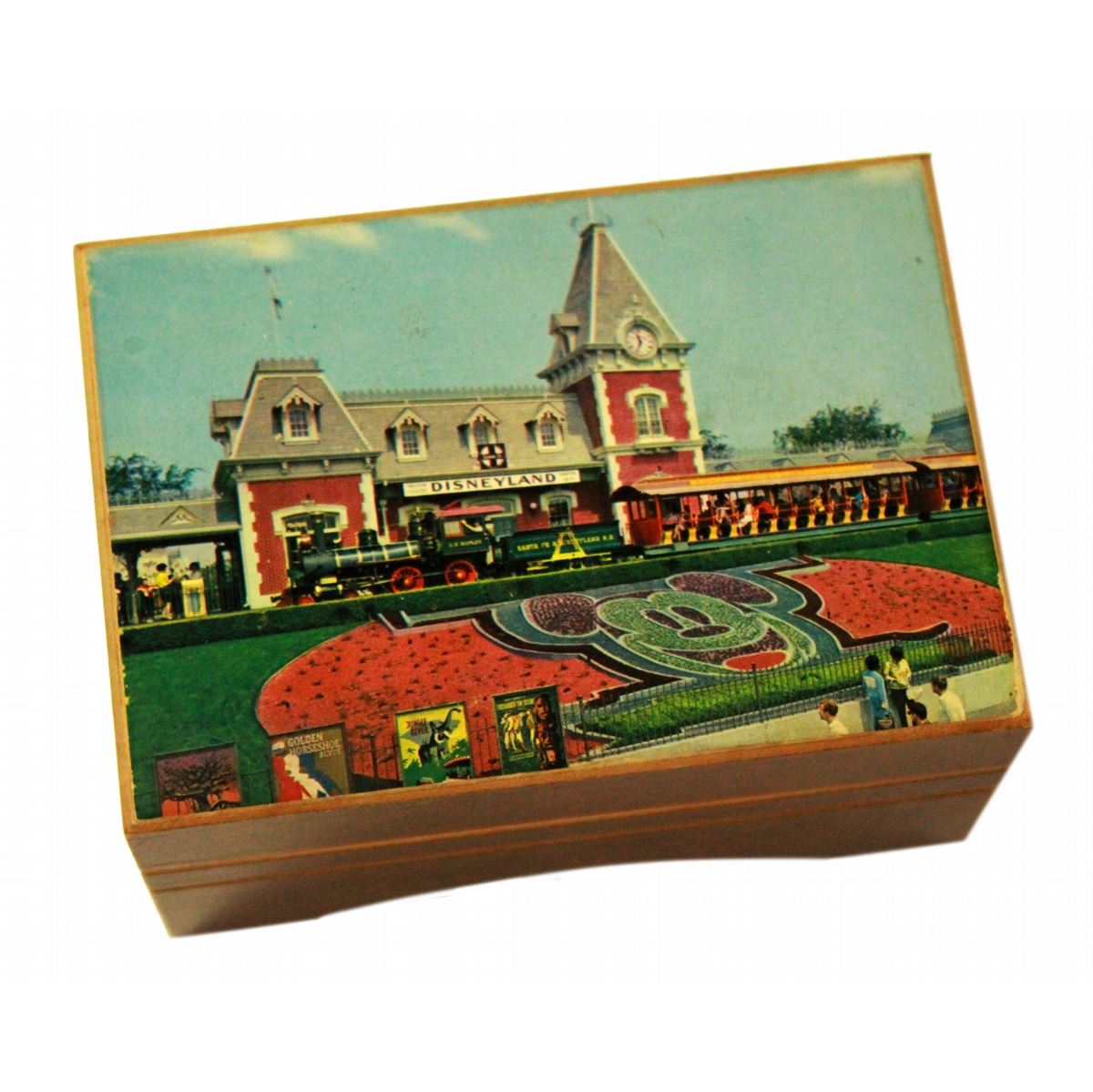 Beautiful wooden music box from the early days of the park. Features excellent imagery on the surface. Measures 3"x4.25" and 2.5" tall. In great condition with mild wear.