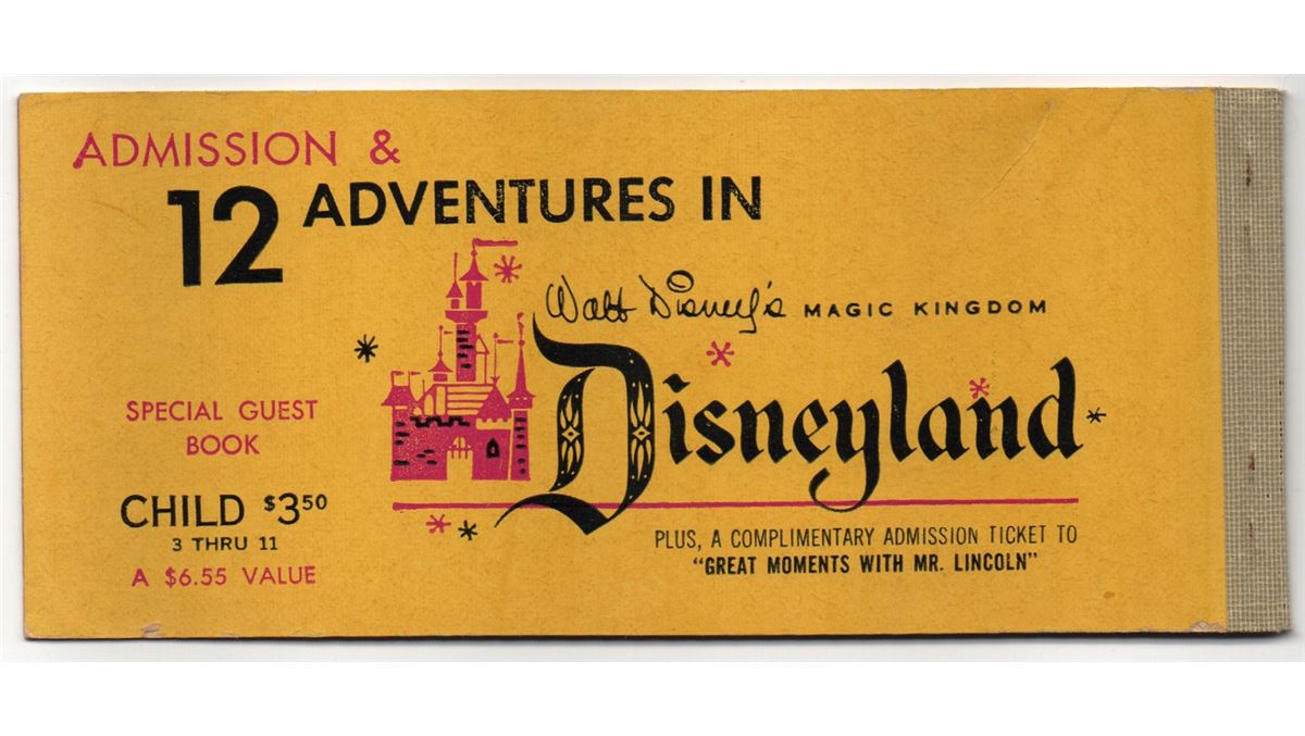 Has a VOID punch thru the book from Disneyland ticket office. Usually, when unused ticket books became outdated, they would be punched out in this manner. In great condition, with very little wear to the piece.