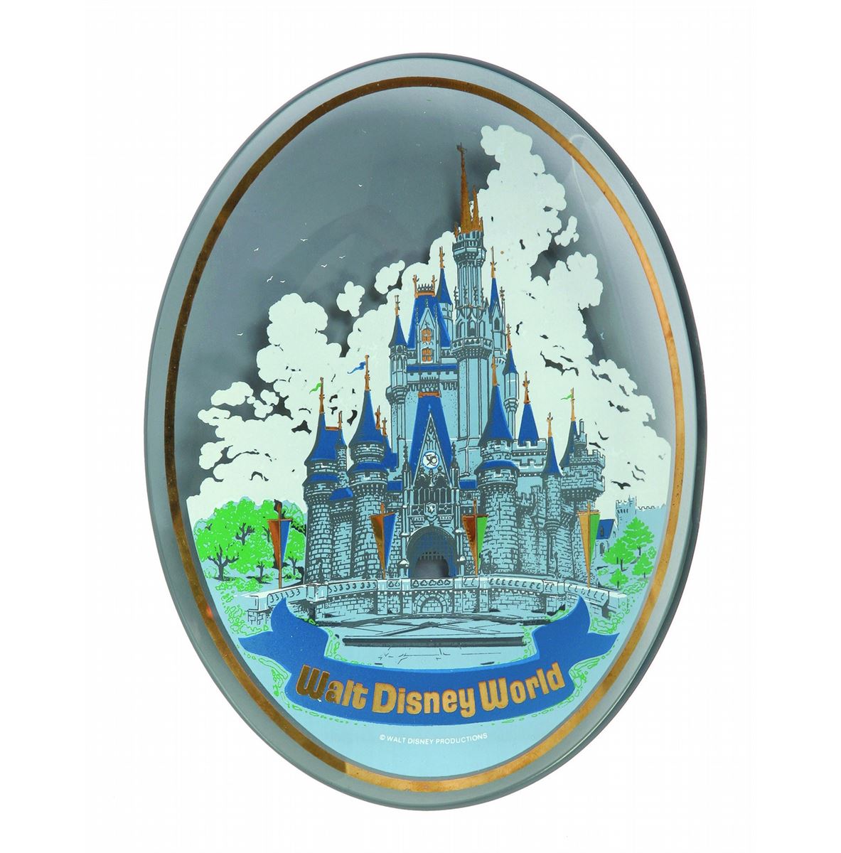 (Walt Disney World, 1970's) A decorative smoked-glass Walt Disney World souvenir plate featuring artwork of Cinderella's Castle over the "Walt Disney World" text. Measures 8.25"x6.25". In very good condition with minimal wear.