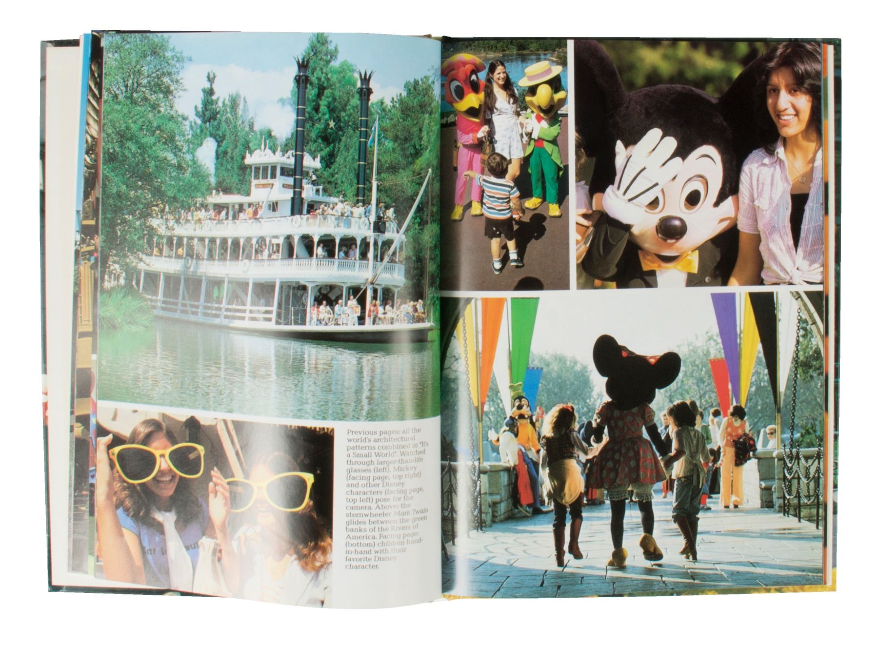 (Disneyland, 1990) A hardcover photo book of Disneyland and the many attractions of the park. Published in 1990 by Crescent Books, this book provides an amazing depiction of what the park was like during its first 35 years. Measuring 10.75"x7.75", the book is in very good condition with little wear.
