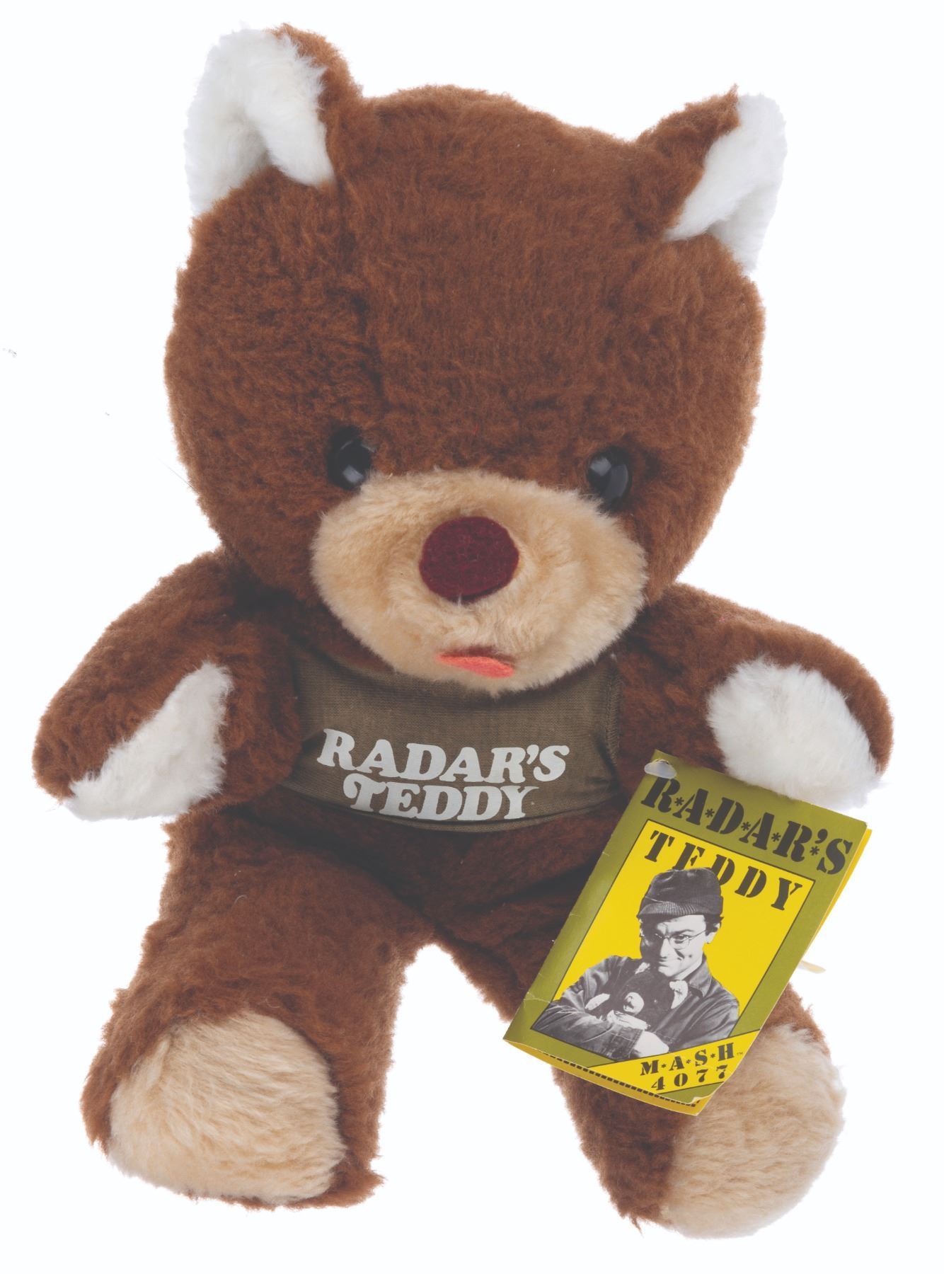 (20th Century Fox/Allando, 1983) A Radar's Teddy collectible bear, released to benefit the Paralyzed Veterans of America. Through the first (8) seasons of M.A.S.H, Radar O'Reilly carried his teddy bear, leaving it with Hawkeye when he left. The iconic original prop was even displayed in the Smithsonian. This tribute bear comes with his original tag with a message from actor Gary Burghoff, and coupon to order dog tags for the bear. Measuring 7.5"x8.5"x9.5", the bear is in very good condition.