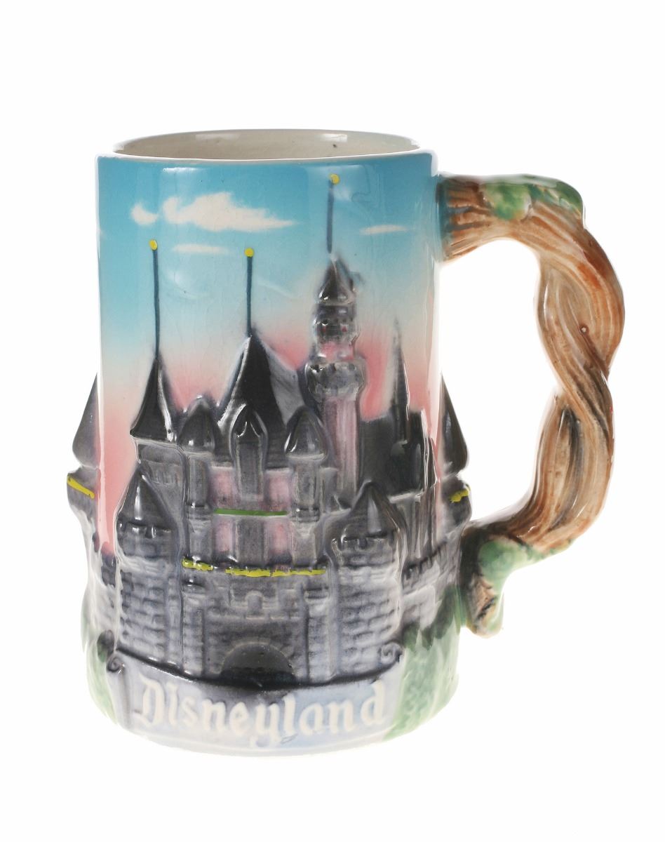 (Disneyland, 1955) A charming early hand-painted souvenir mug featuring an image of Sleeping Beauty Castle. Measures 5.25"x3.5". In very good condition with some wear to the paint along the edges and raised areas.