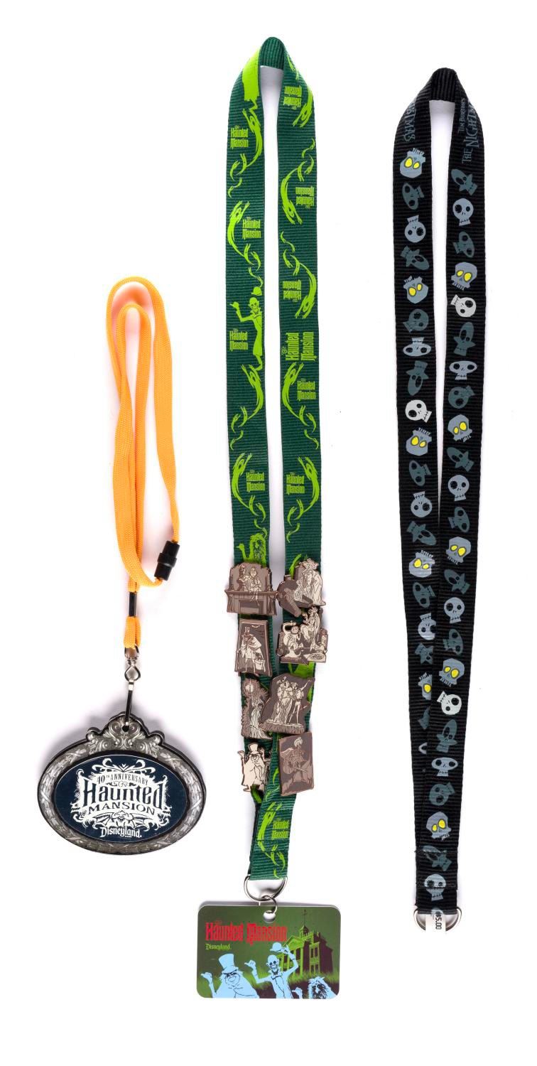 (Disney Parks) A collection of (3) lanyards. Included are (1) Nightmare Before Christmas, (1) Haunted Mansion 40th anniversary event pass, and one pin trading lanyard with (8) exclusive Haunted Mansion pins. All the lanyards are in fine condition.