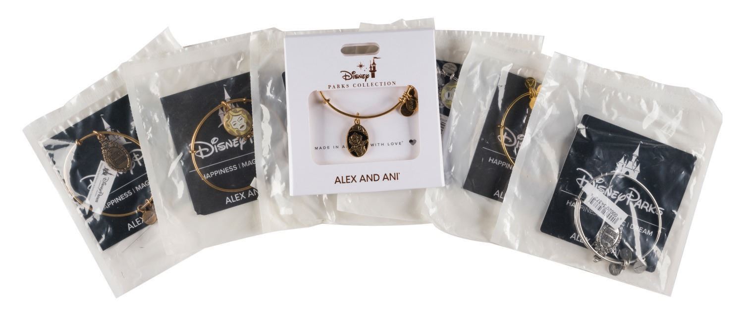 (Disney Parks, 2018) A group of (7) Alex & Ani bracelets inspired by The Haunted Mansion. Among the lot are (2) singing busts, (2) Madame Leota, (2) plaque, and (1) Ghost Host necklace. Measuring 2"x2.5", the adjustable bracelets are in fine condition.