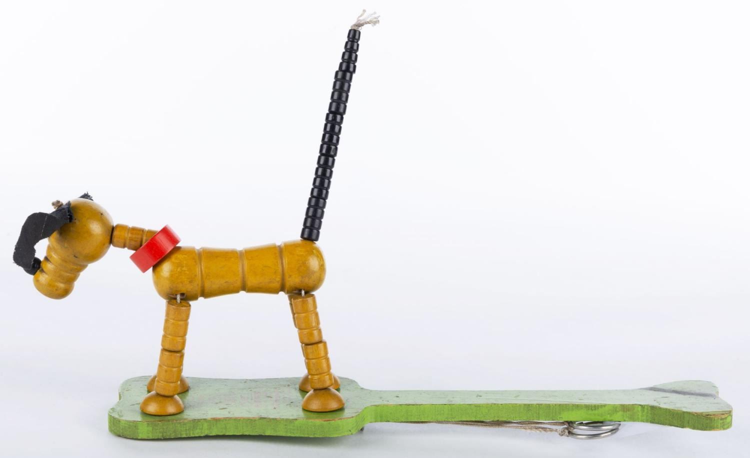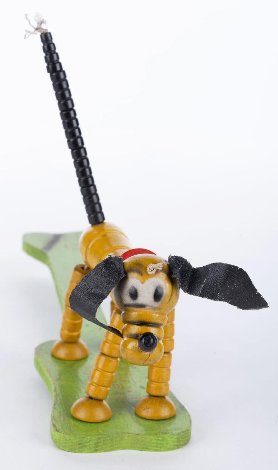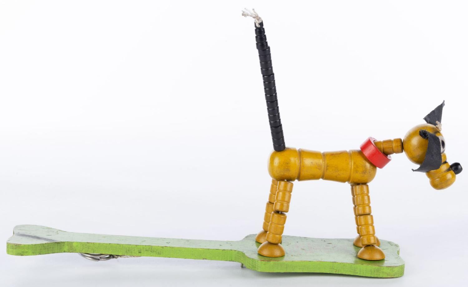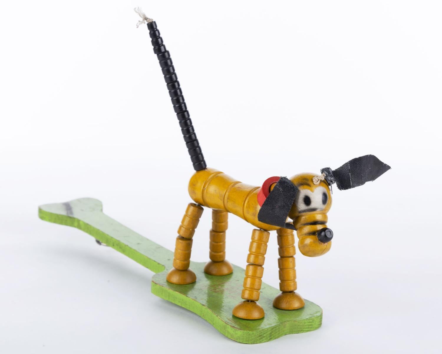(Fisher Price, 1936) A Fisher-Price Pop Up Kritter Pluto Toy. Measuring 11.25" long and 7.5" tall, the toy is in good condition with scuffs, chips, cracks, paint fading, and discoloration from age.