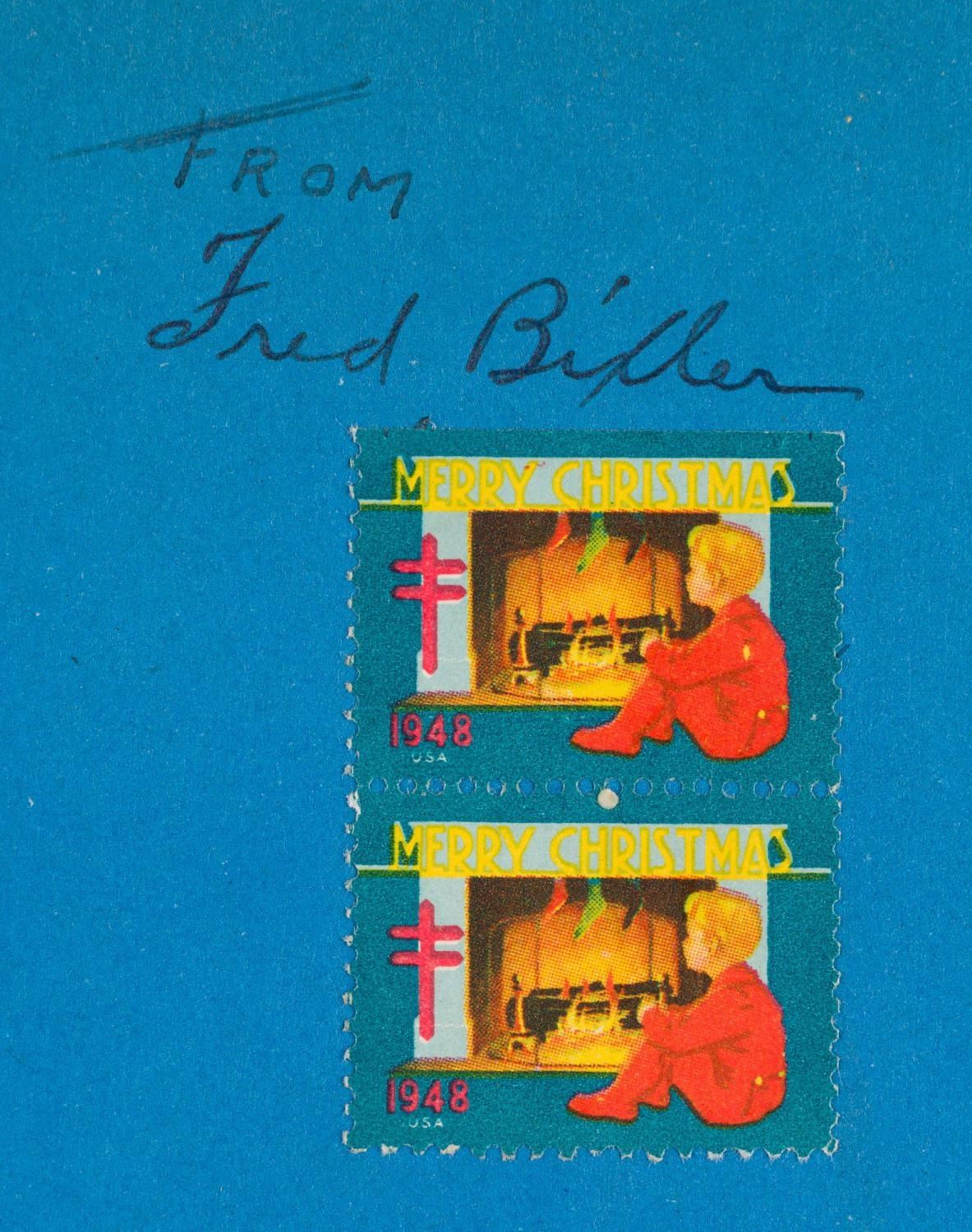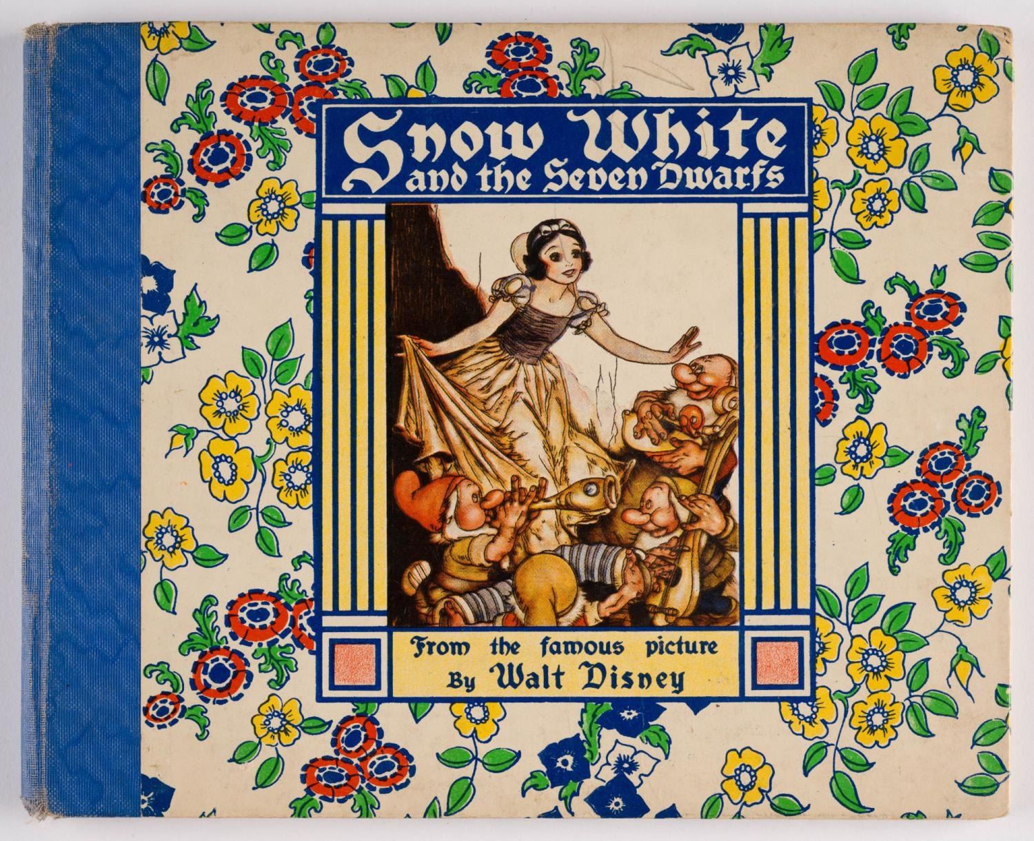 (Grosset & Dunlap, 1938) A "Snow White and the Seven Dwarfs" storybook adapted from the film. Measuring 9” x 7.25”, the book is in very good condition with typical wear from use, and a name written inside the cover with two 1948 Christmas Seal stamps.