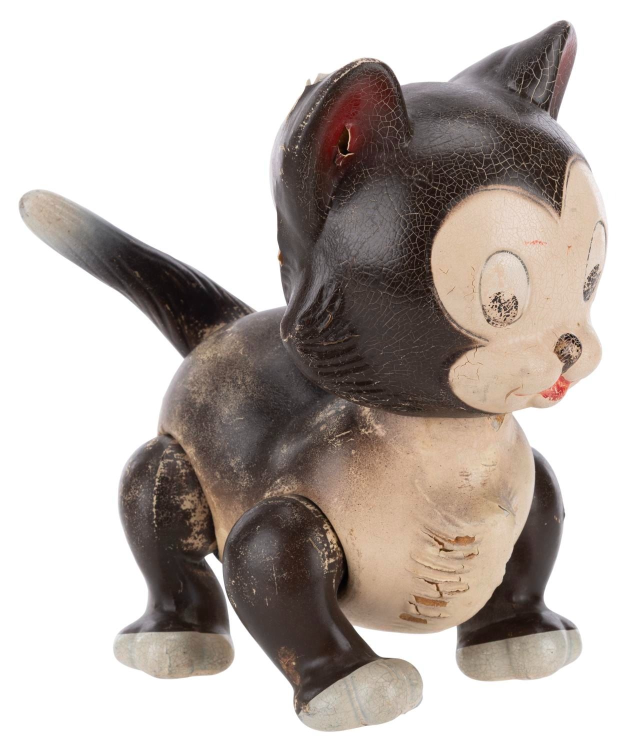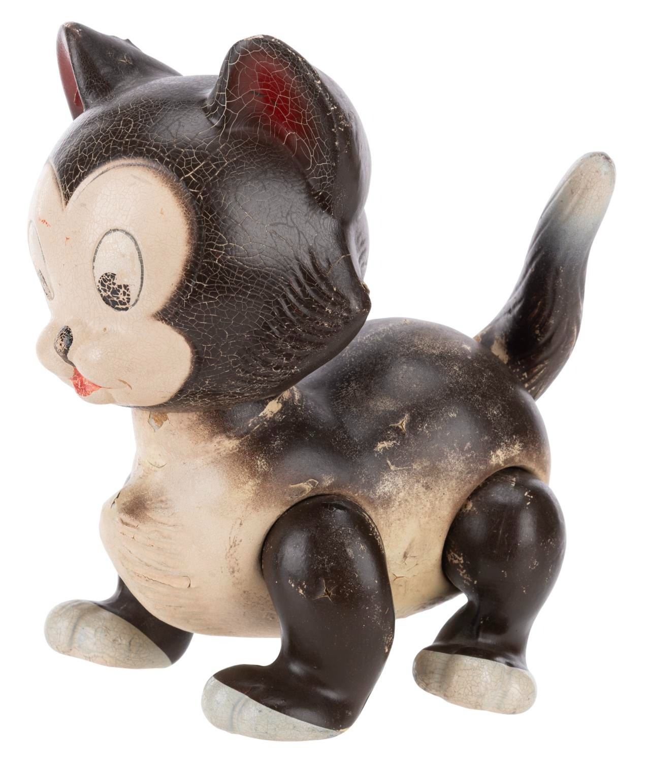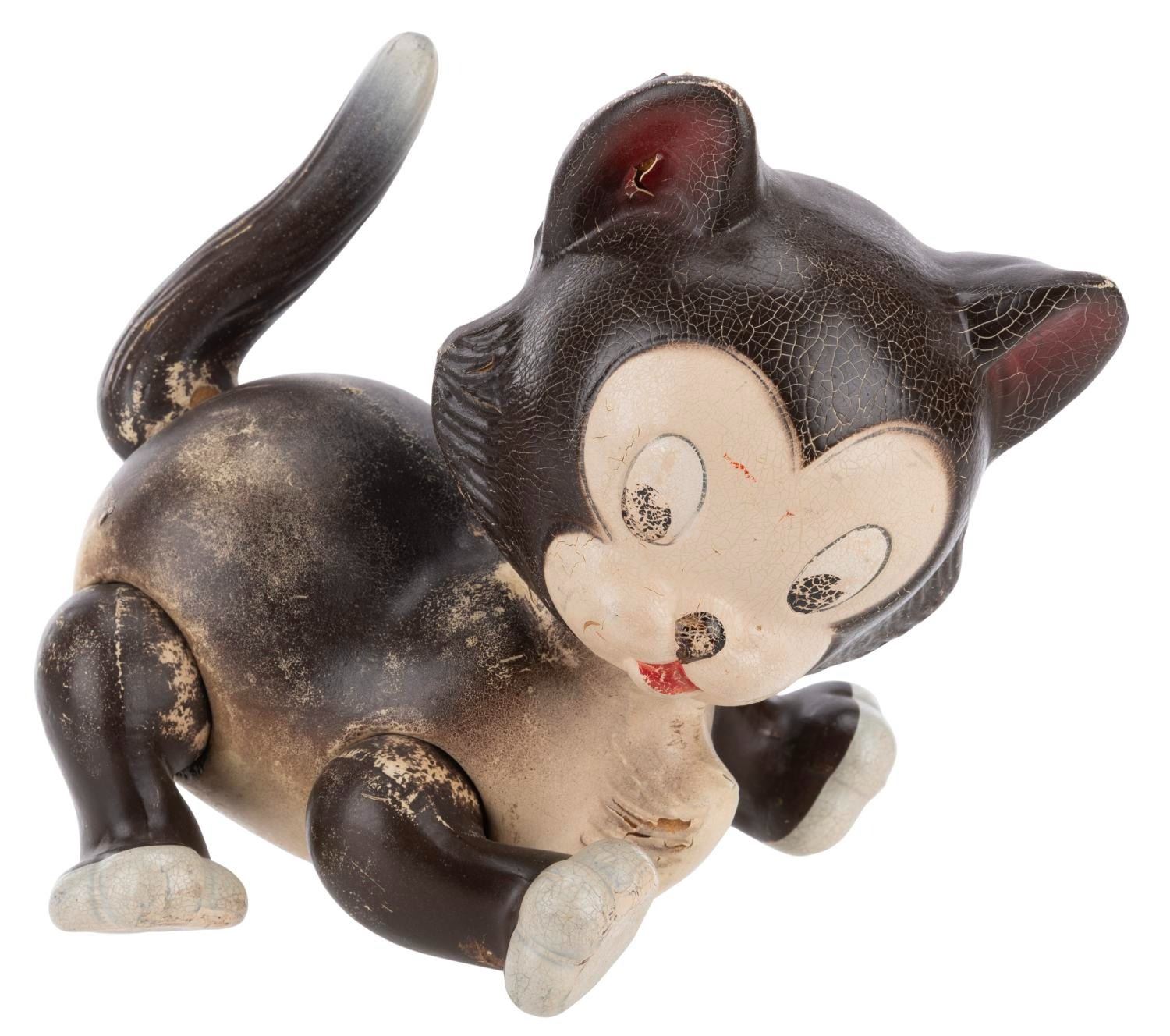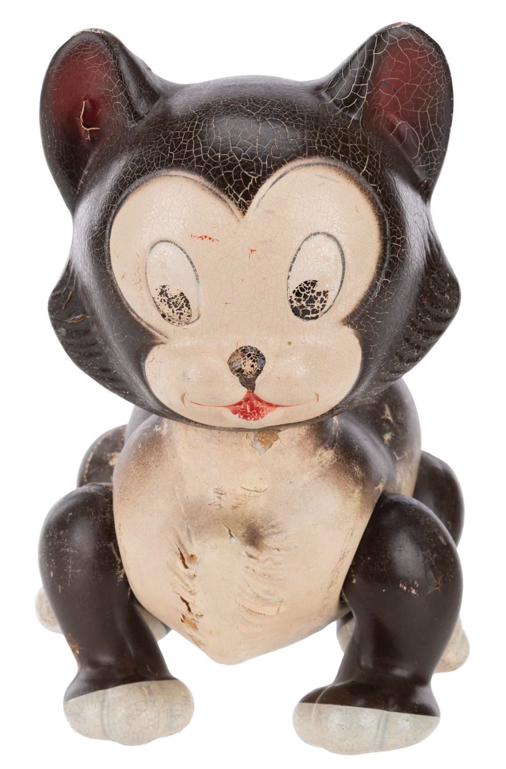 (Knickerbocker, 1939) A composition toy of Figaro from Walt Disney's "Pinocchio." Measuring 9" x 5" x 7" tall, the hand-painted toy is in fair condition with heavy wear including paint loss, crazing, scuffs, and scratches.