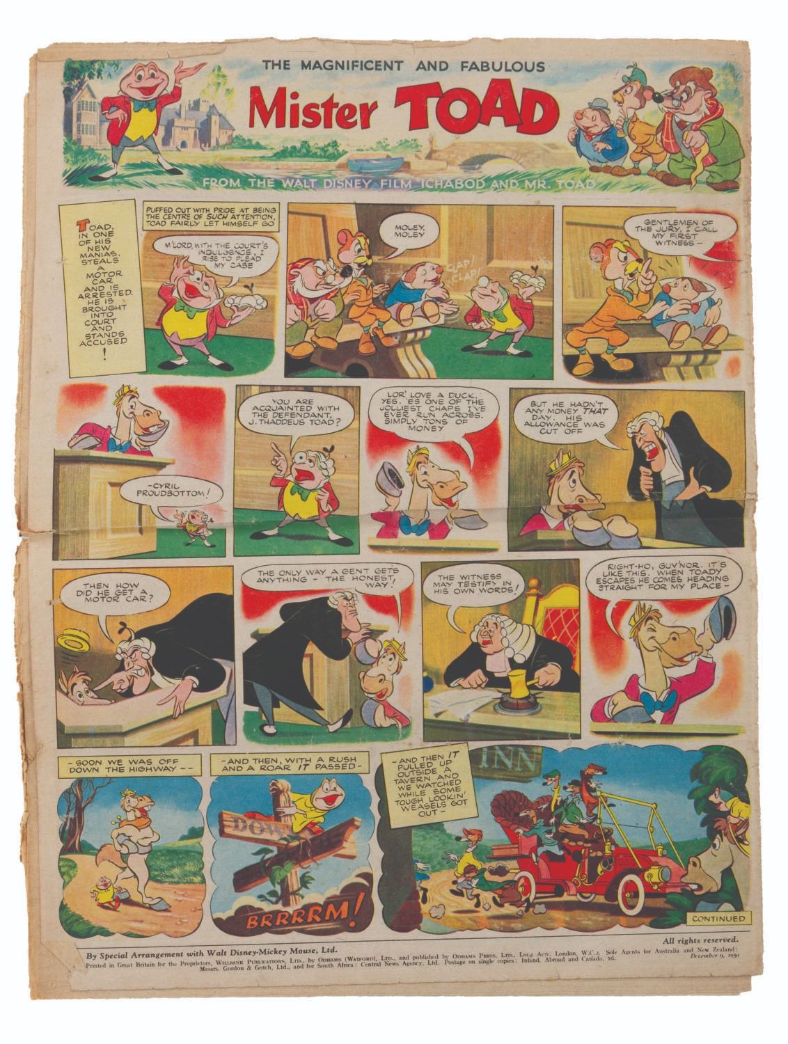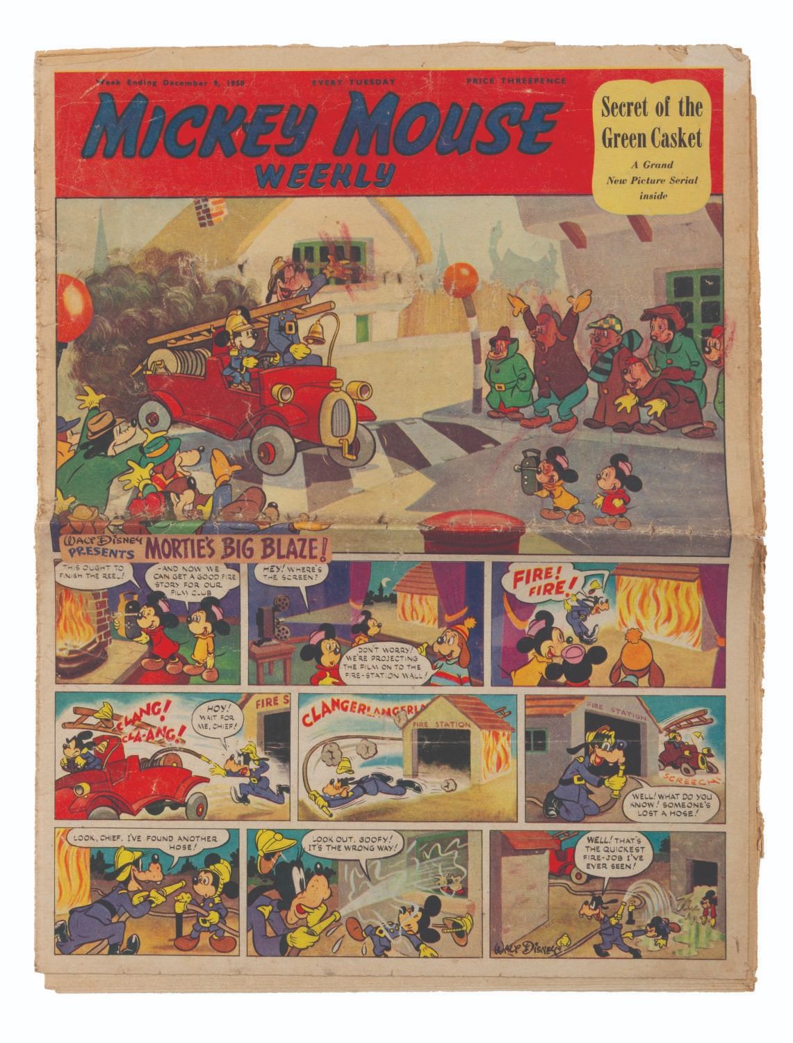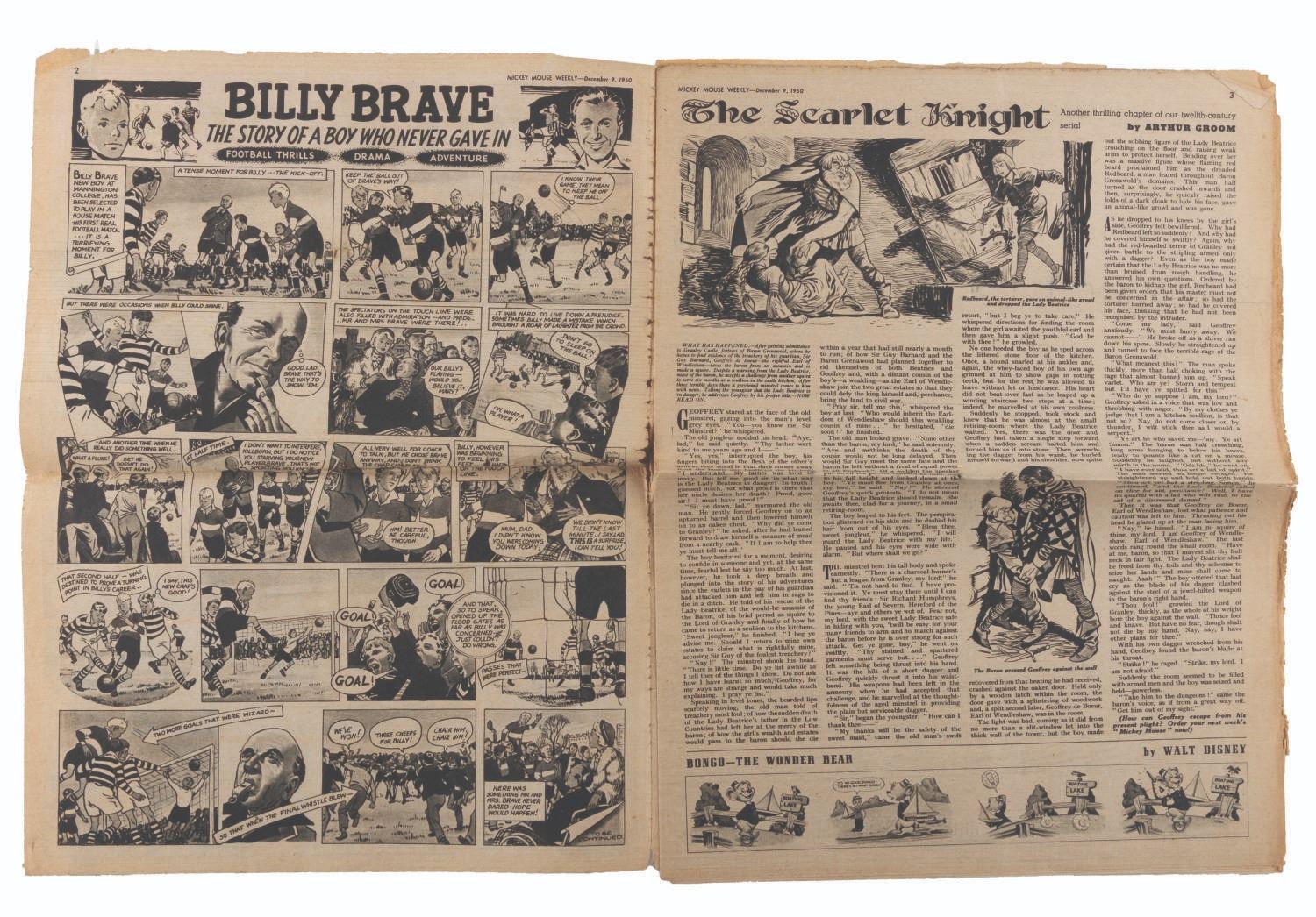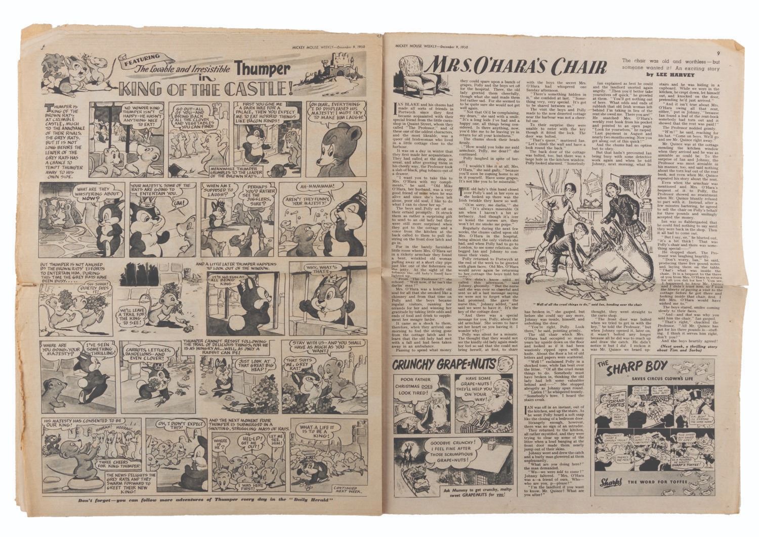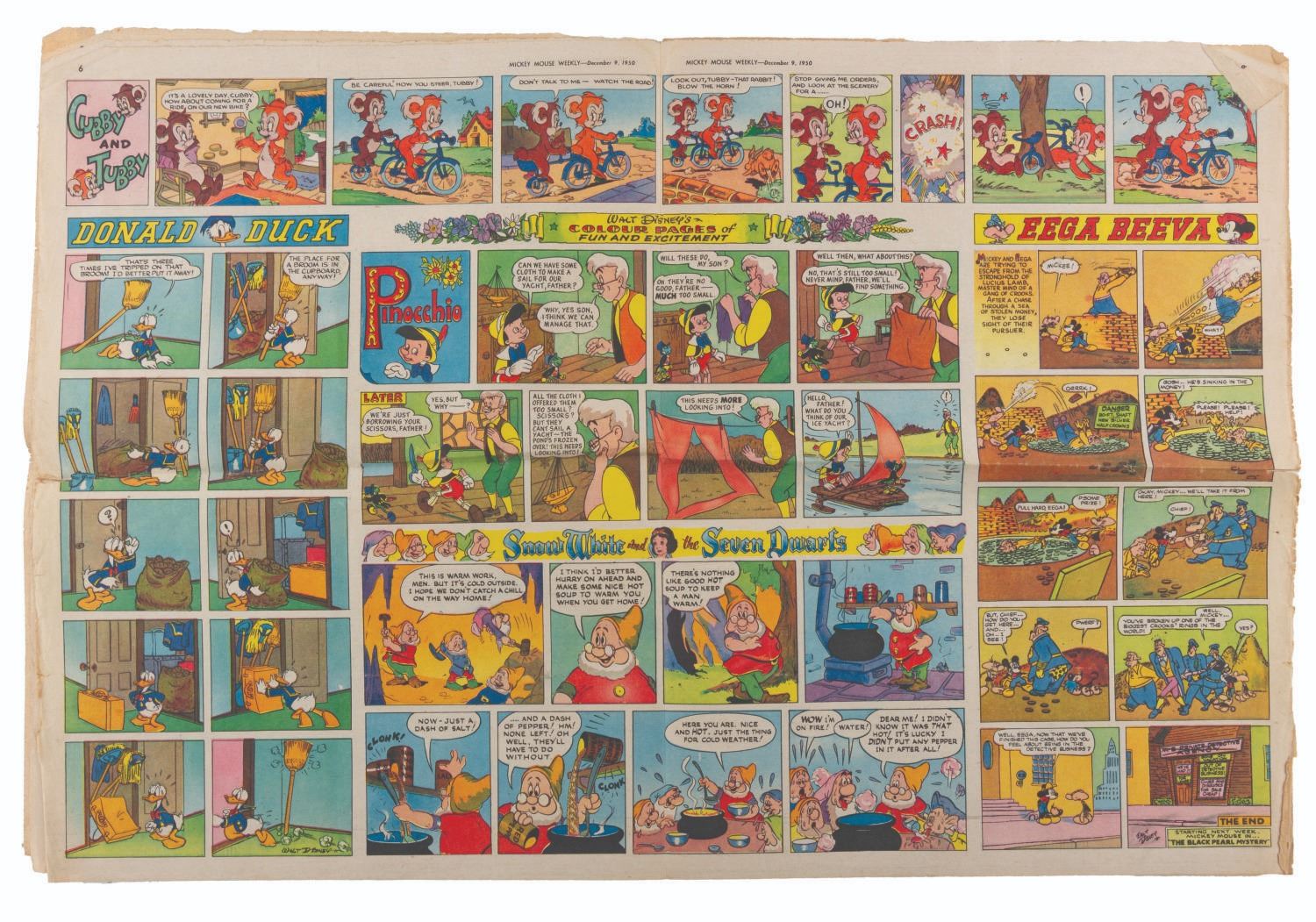 (Disney, 1950) A Mickey Mouse Weekly issue from December 9, 1950. Measuring 11" x 14", the insert is in fair condition with tears up to 1.5" long, edge wear, heavy separation at the spine, crayon marks, and discoloration from age.