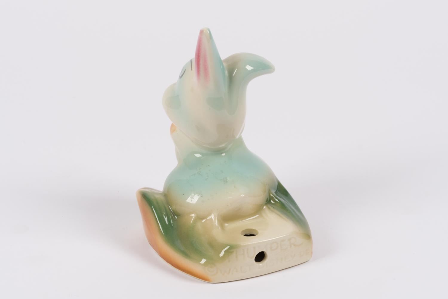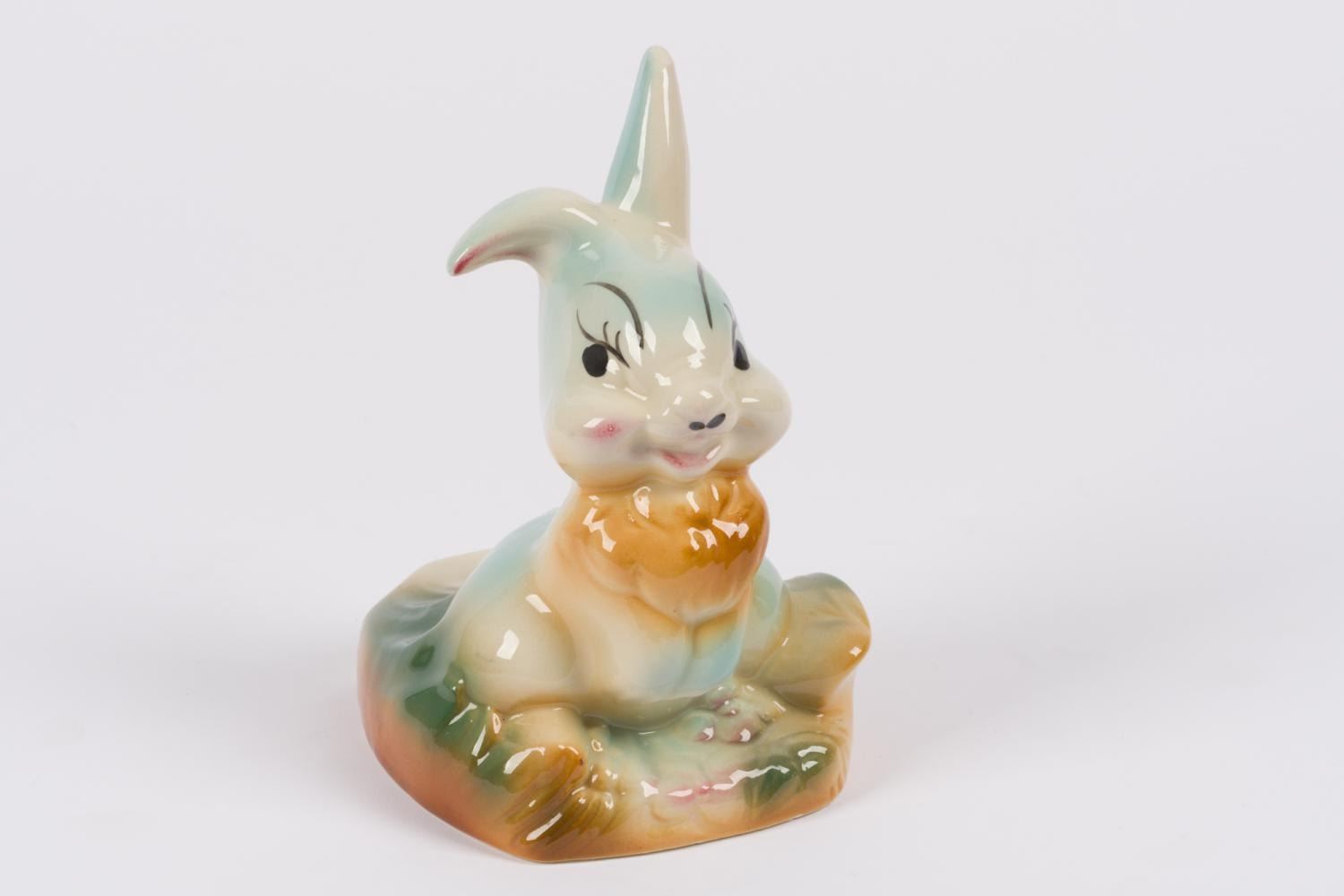 (Leeds China, 1950s) A ceramic lamp base of Thumper from "Bambi." Measuring 4" x 4.5" x 6.25" tall, the lamp base is in very good condition.