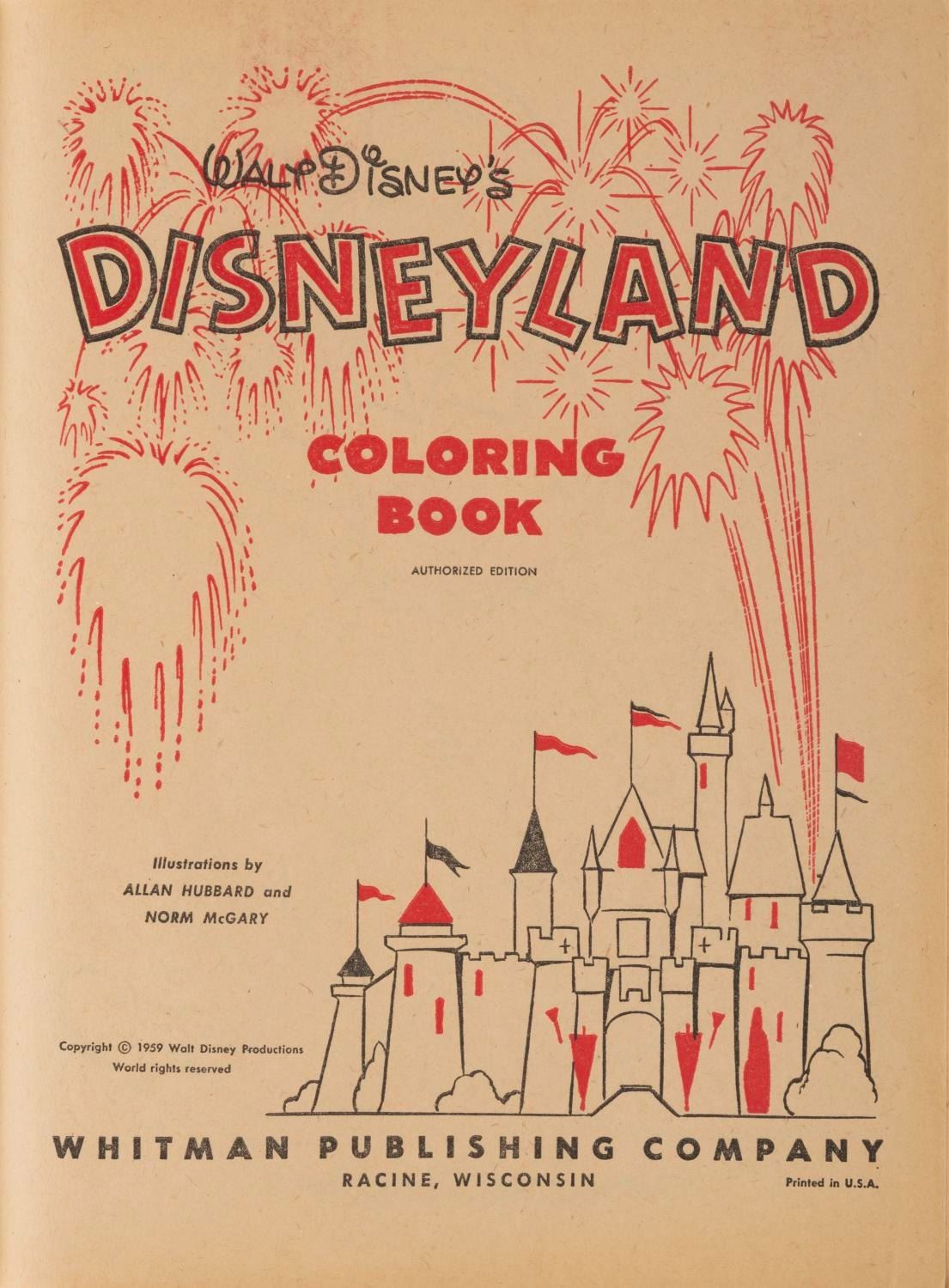 A 1950s Walt Disney's Disneyland Coloring Book.
