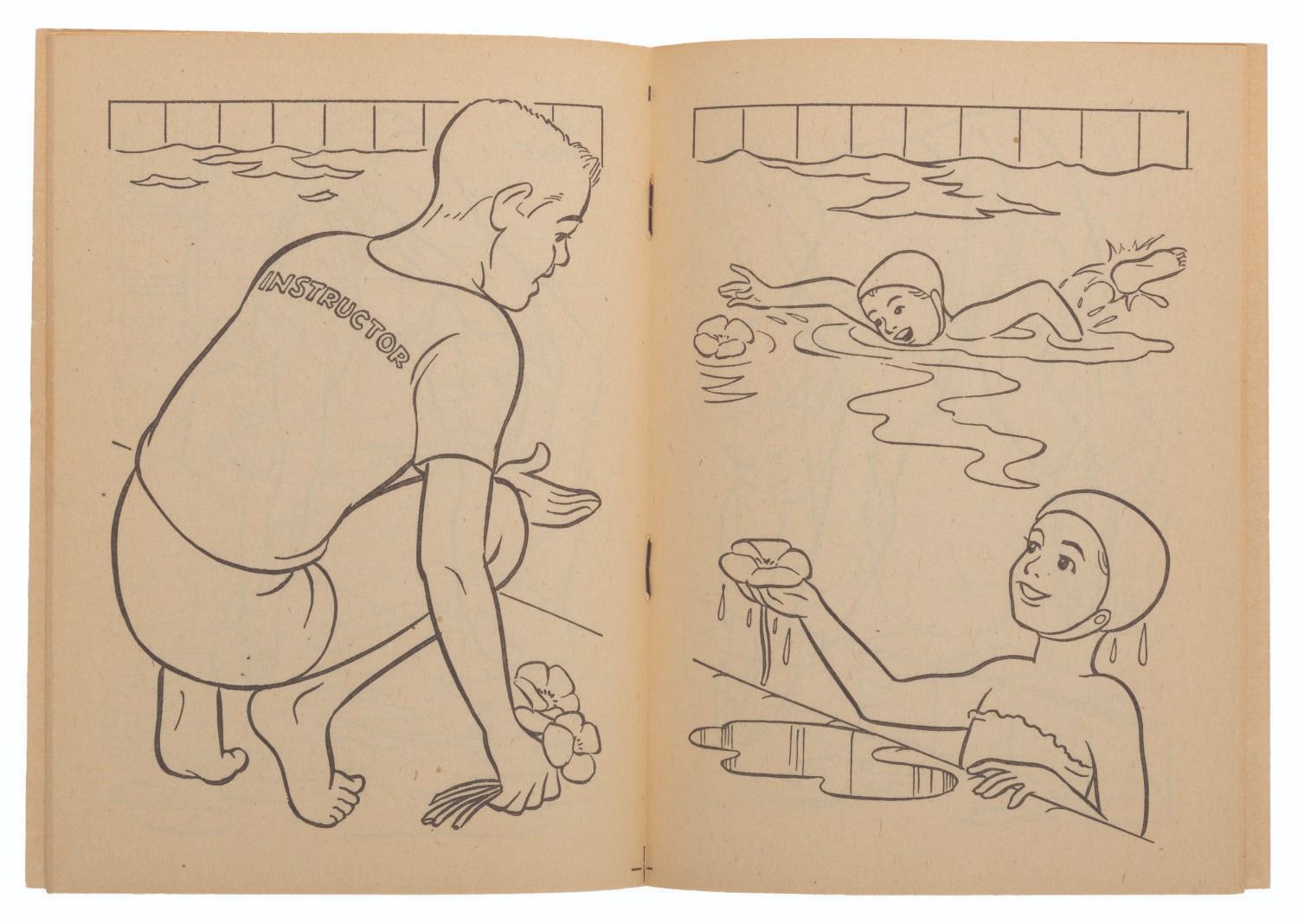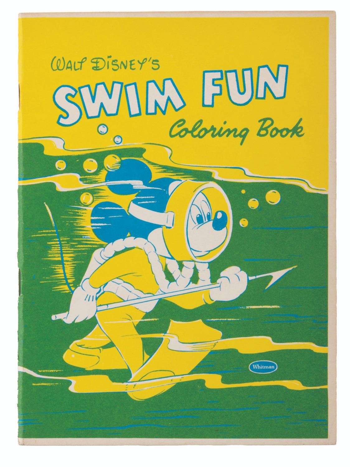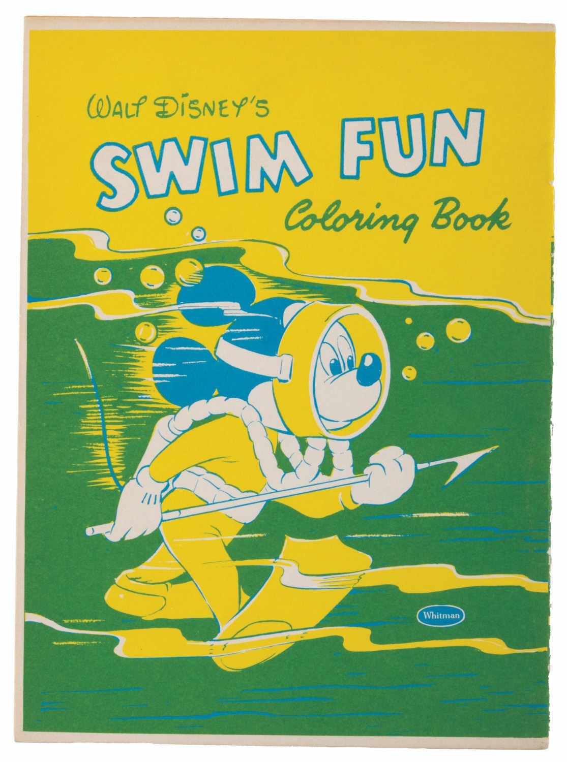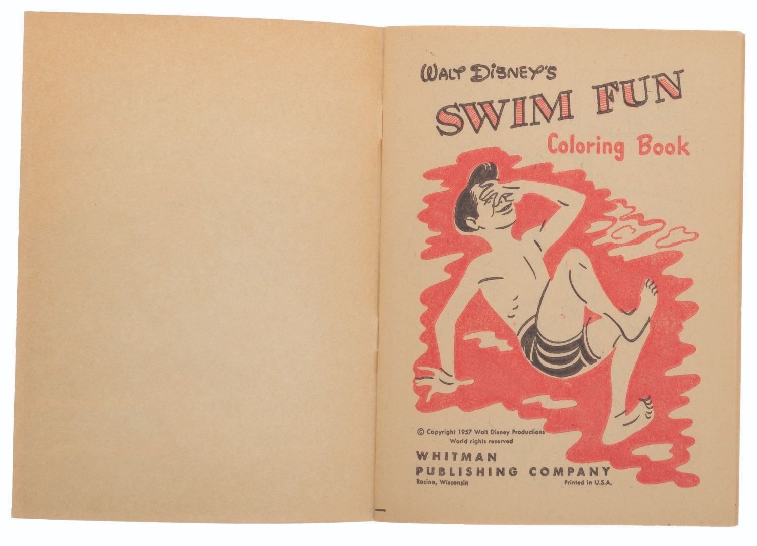 (Whitman, 1957) A Walt Disney's Swim Fun Coloring Book by the Whitman Publishing Co. Measuring 5.5" x 7.5", the unused coloring book is in very good condition with light wear from age.