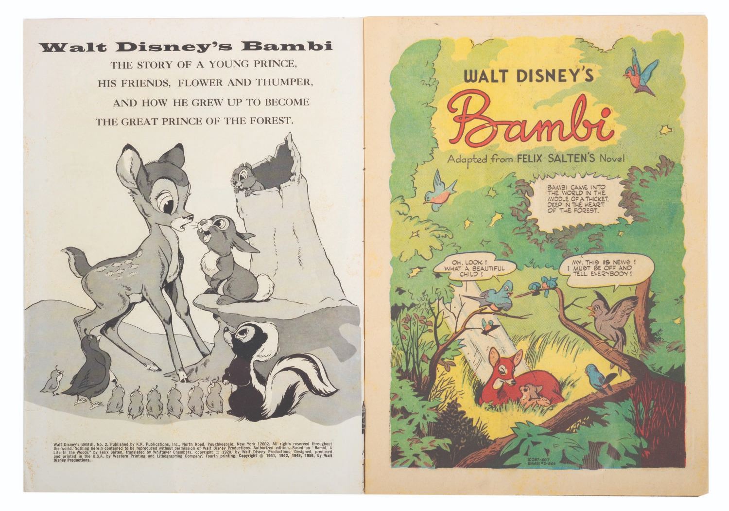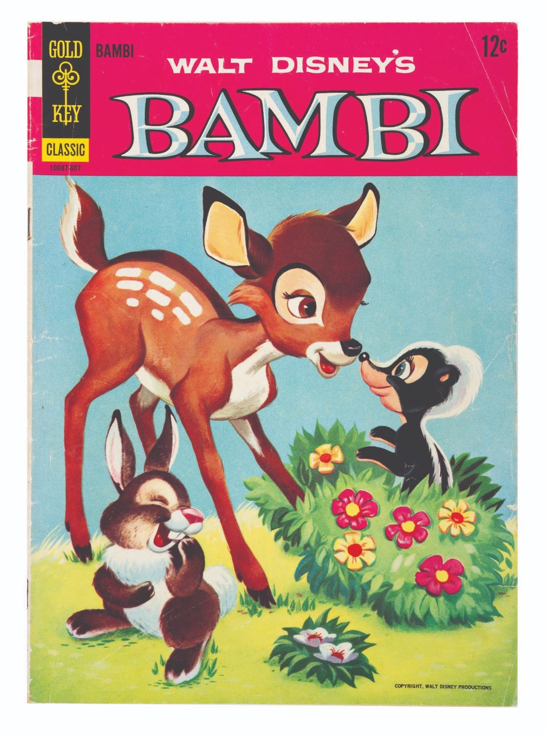 (Gold Key, 1963) A "Walt Disney's Bambi" comic book by Gold Key. Measuring 7.25" x 10.25", the comic is in good condition, with a few slight creases and minor wear to the spine and edges.