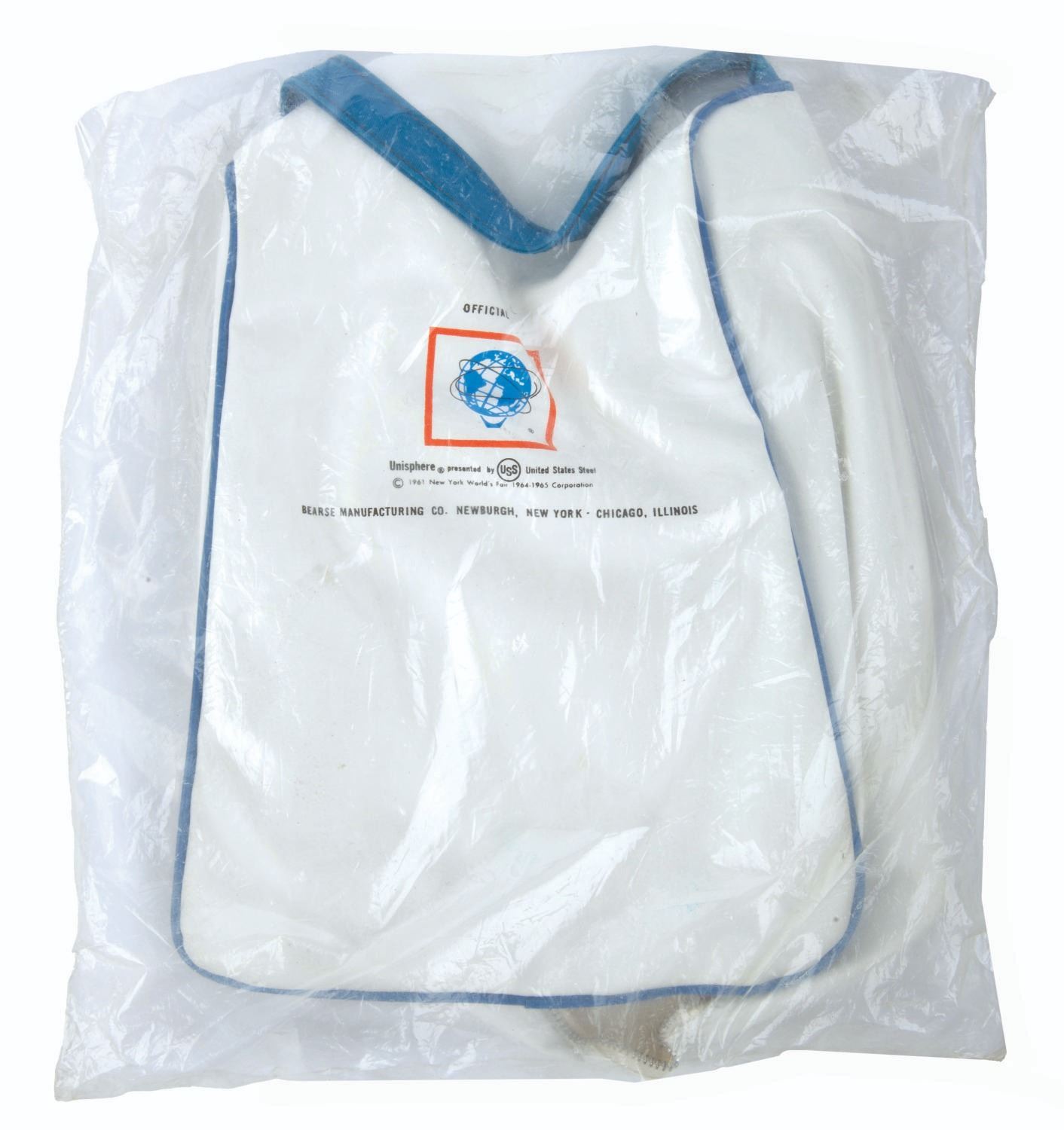 (Bearse Manufacturing, 1961-65) A vinyl zippered souvenir bag from the 1964-65 New York World's Fair. Measuring 11.5" x 8.25" x 3", the bag is in fine condition, still sealed within the original plastic.