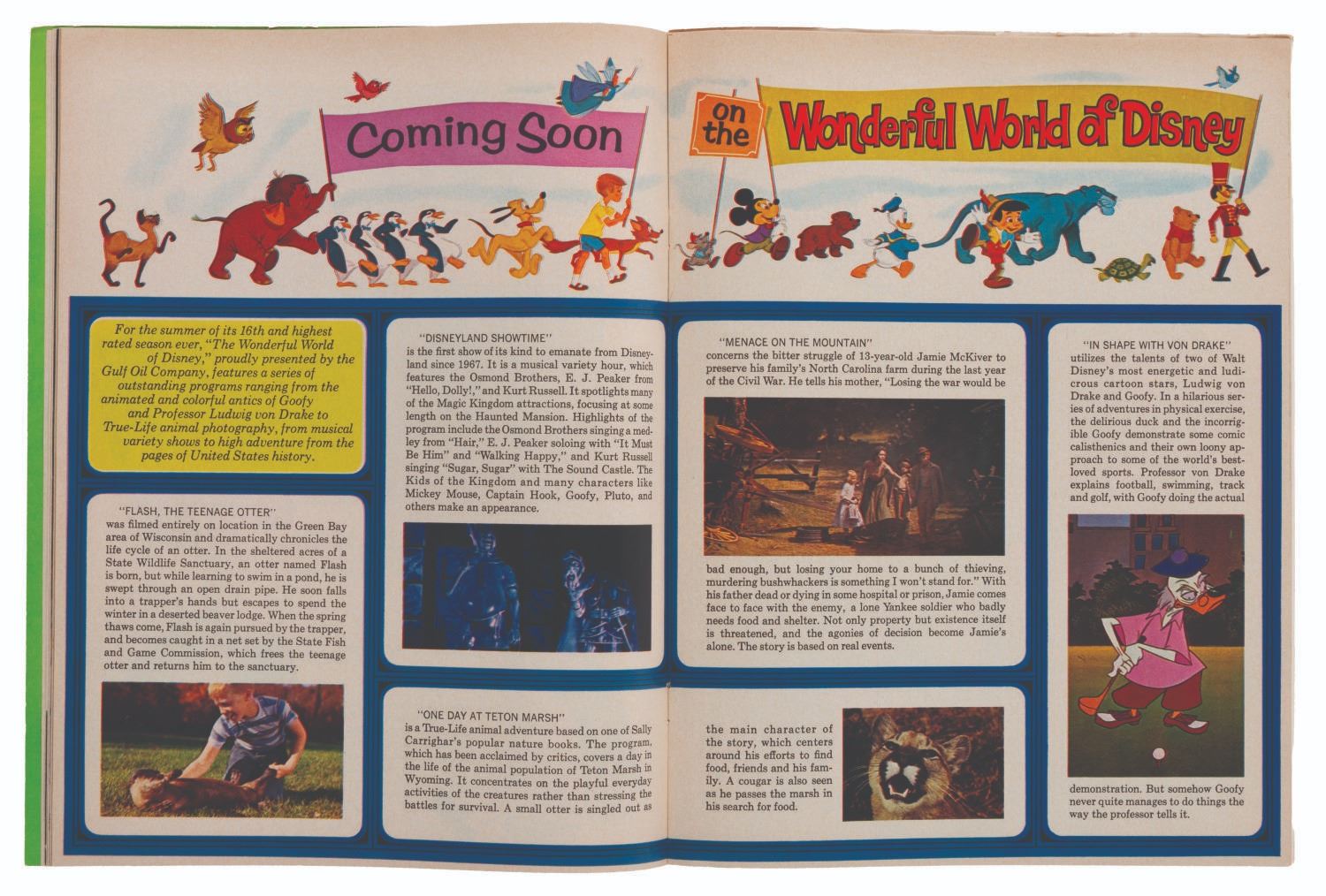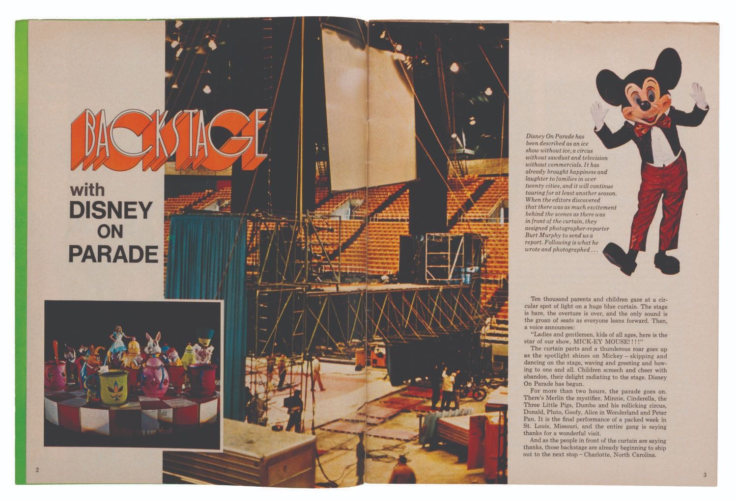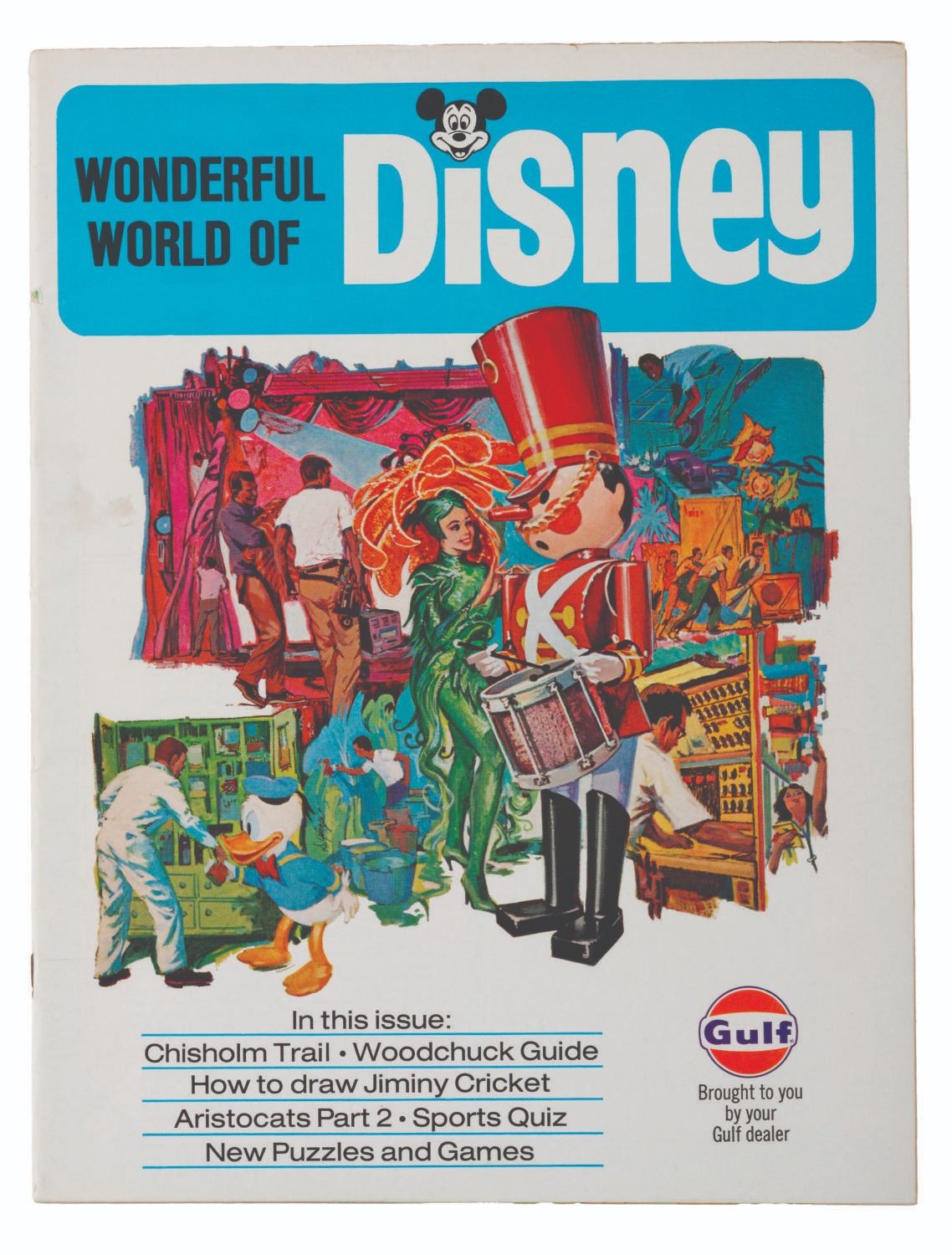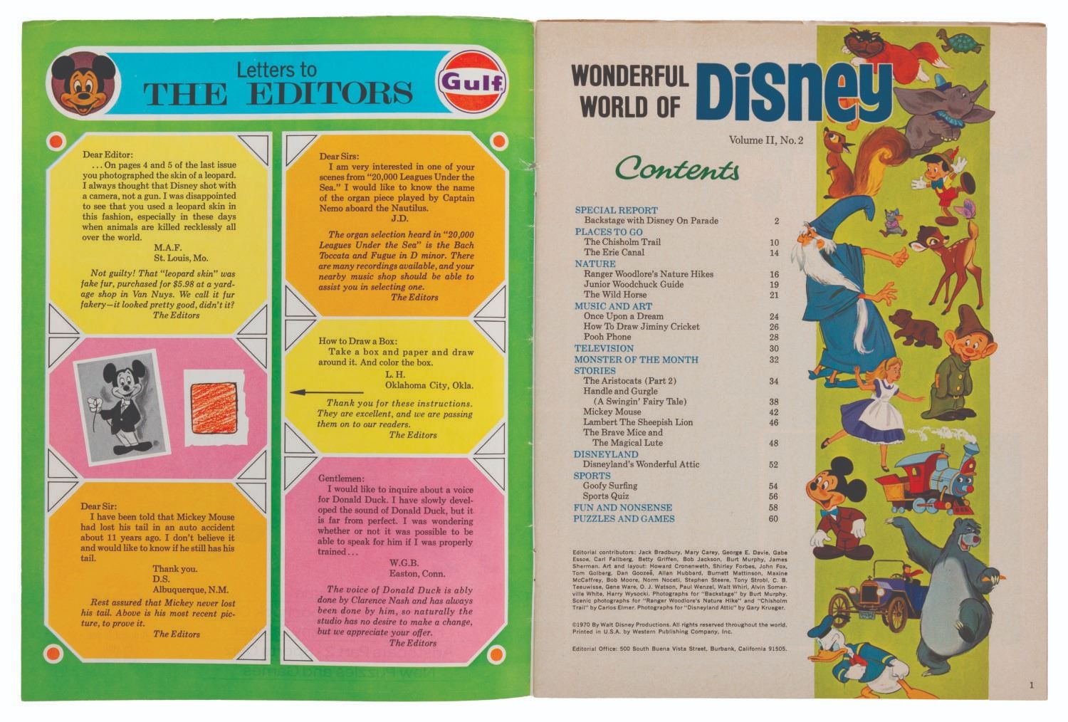 (Disney, 1970) Vol. II No.2 of Wonderful World of Disney magazine, with a cover story on backstage at Disney on Parade. The magazine is in good condition with wear to the cover, including a small chip near the spine.