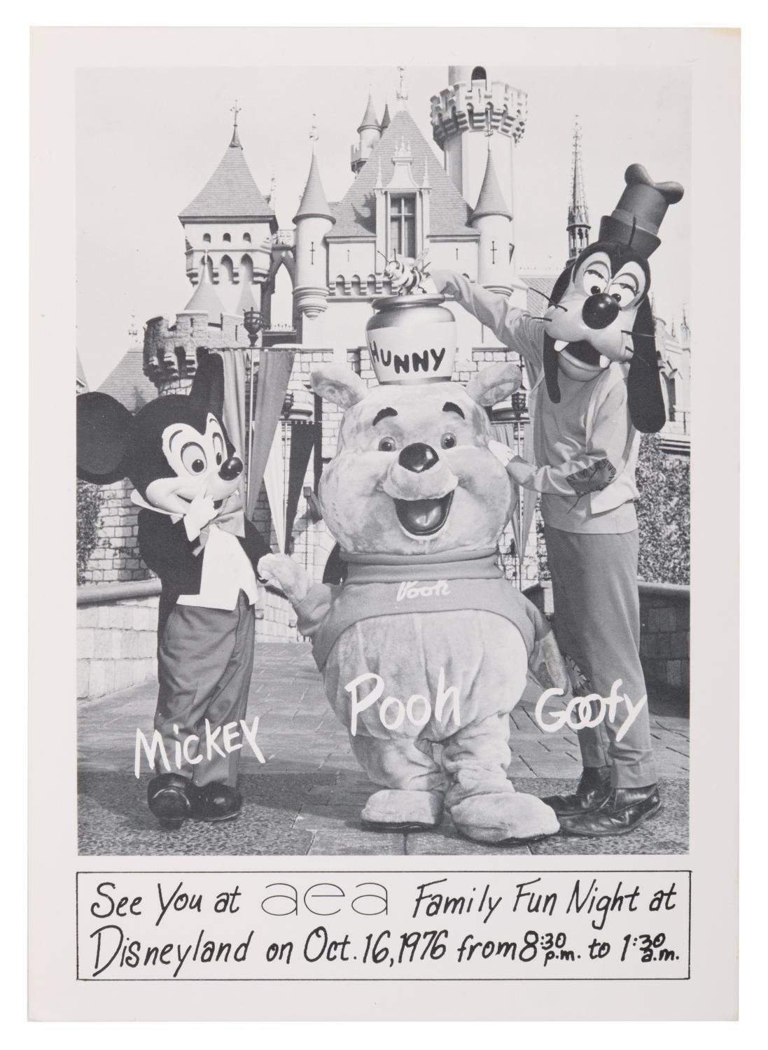 (Disneyland, 1976) An invitation for AEA Family Fun Night at Disneyland on October 16, 1976. Measuring 5" x 7", the invitation displays in very good condition with scratches, edge wear, and a spot of discoloration.