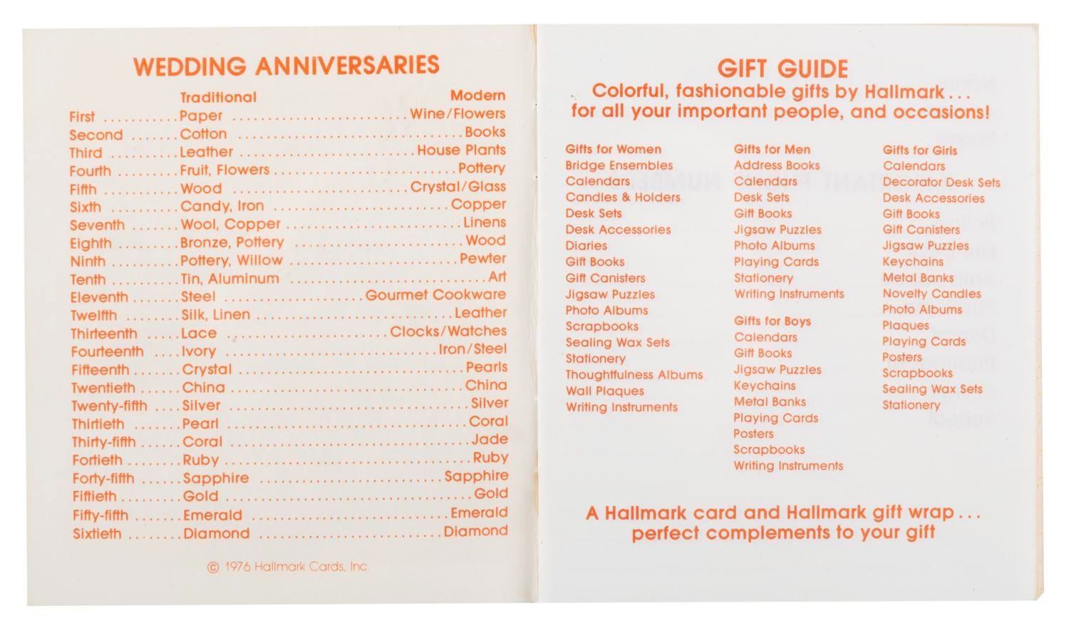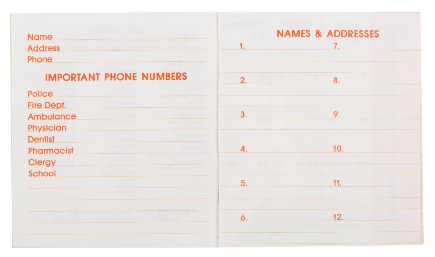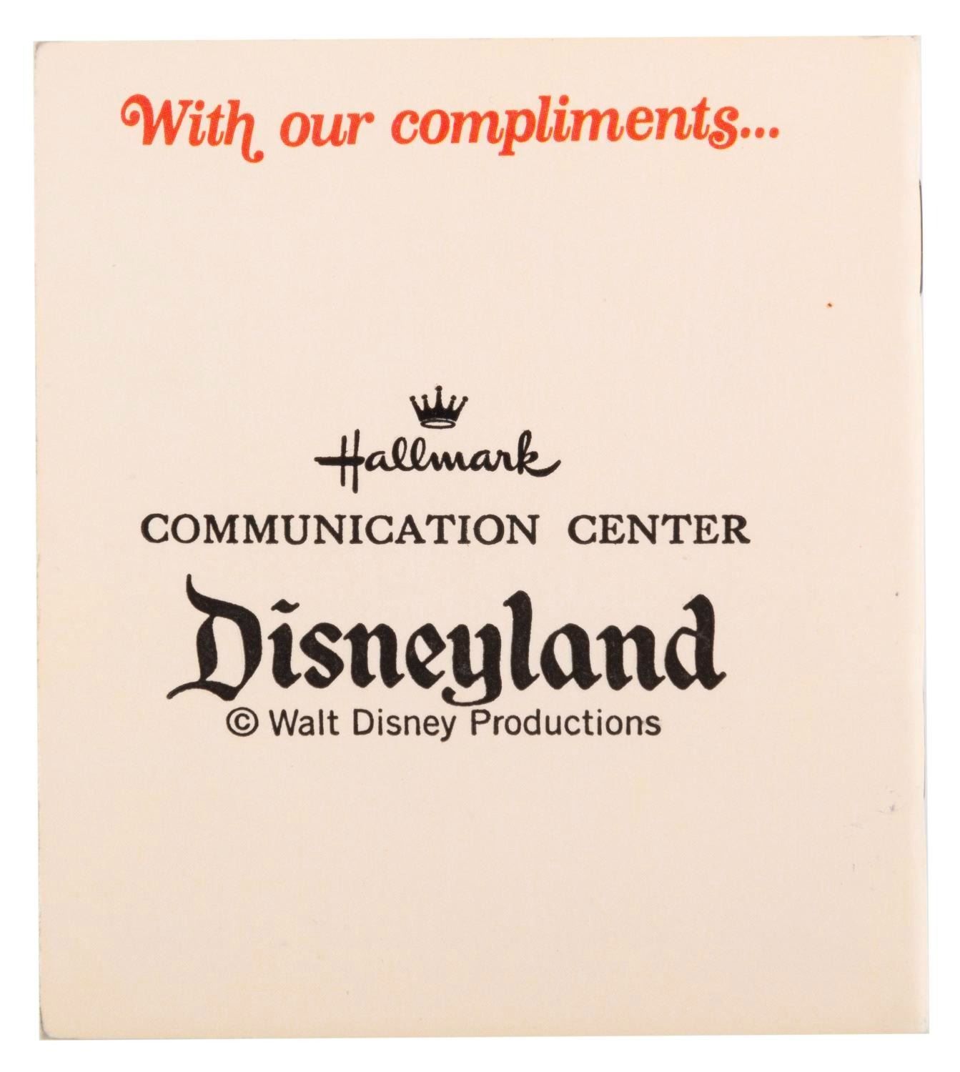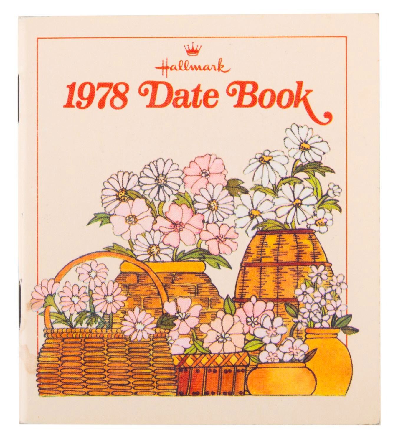 (Hallmark, 1978) A complimentary 1978 Date Book from the Hallmark Communication Center on Main Street at Disneyland. Measuring 3.5” x 4”, the book is in good condition with light edge wear, a light stain to the left of the spine, and eight detached but included pages.