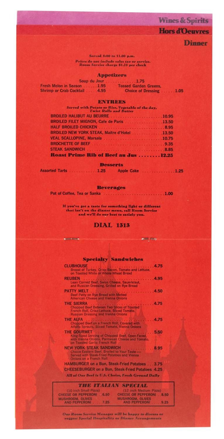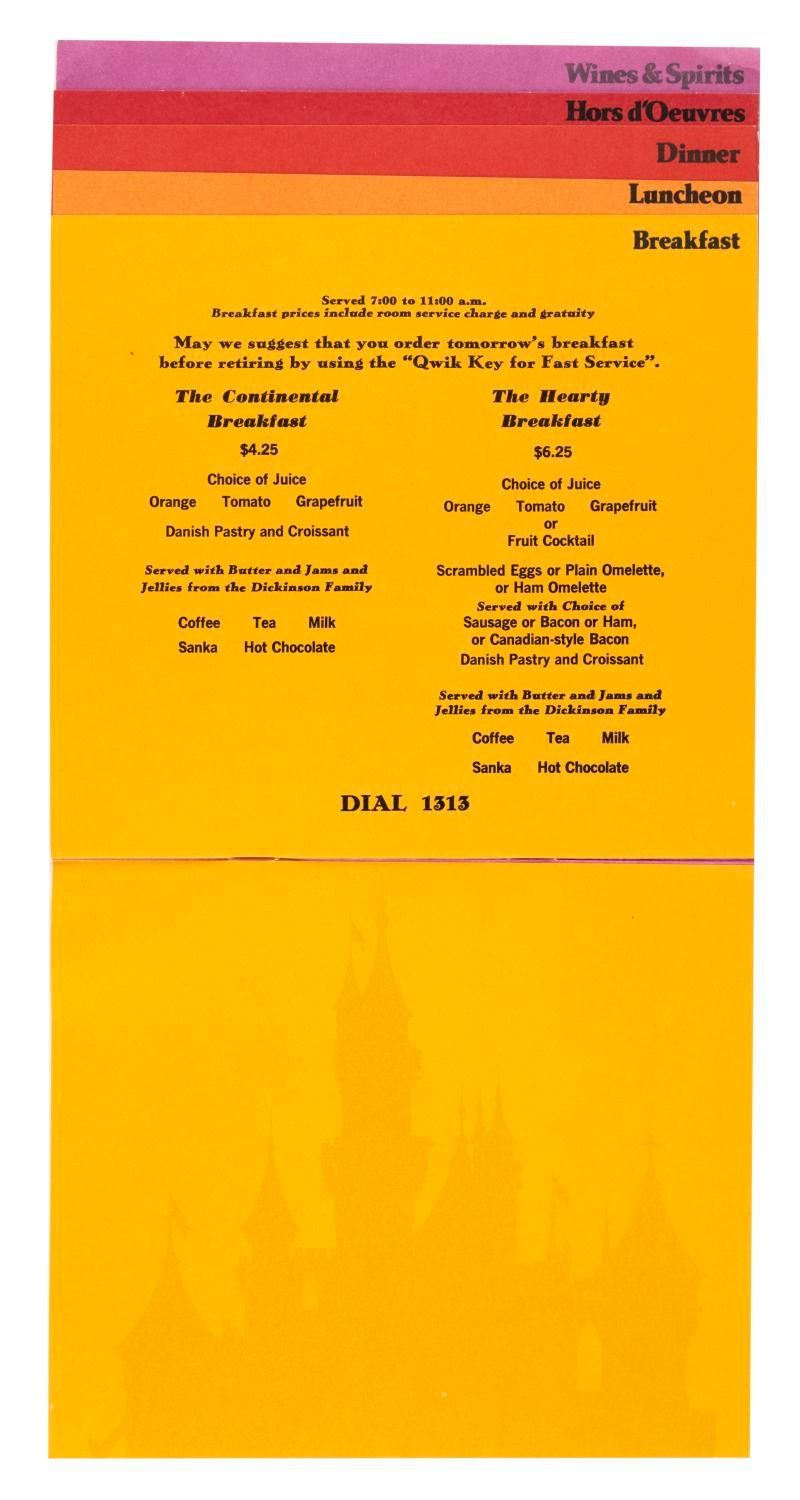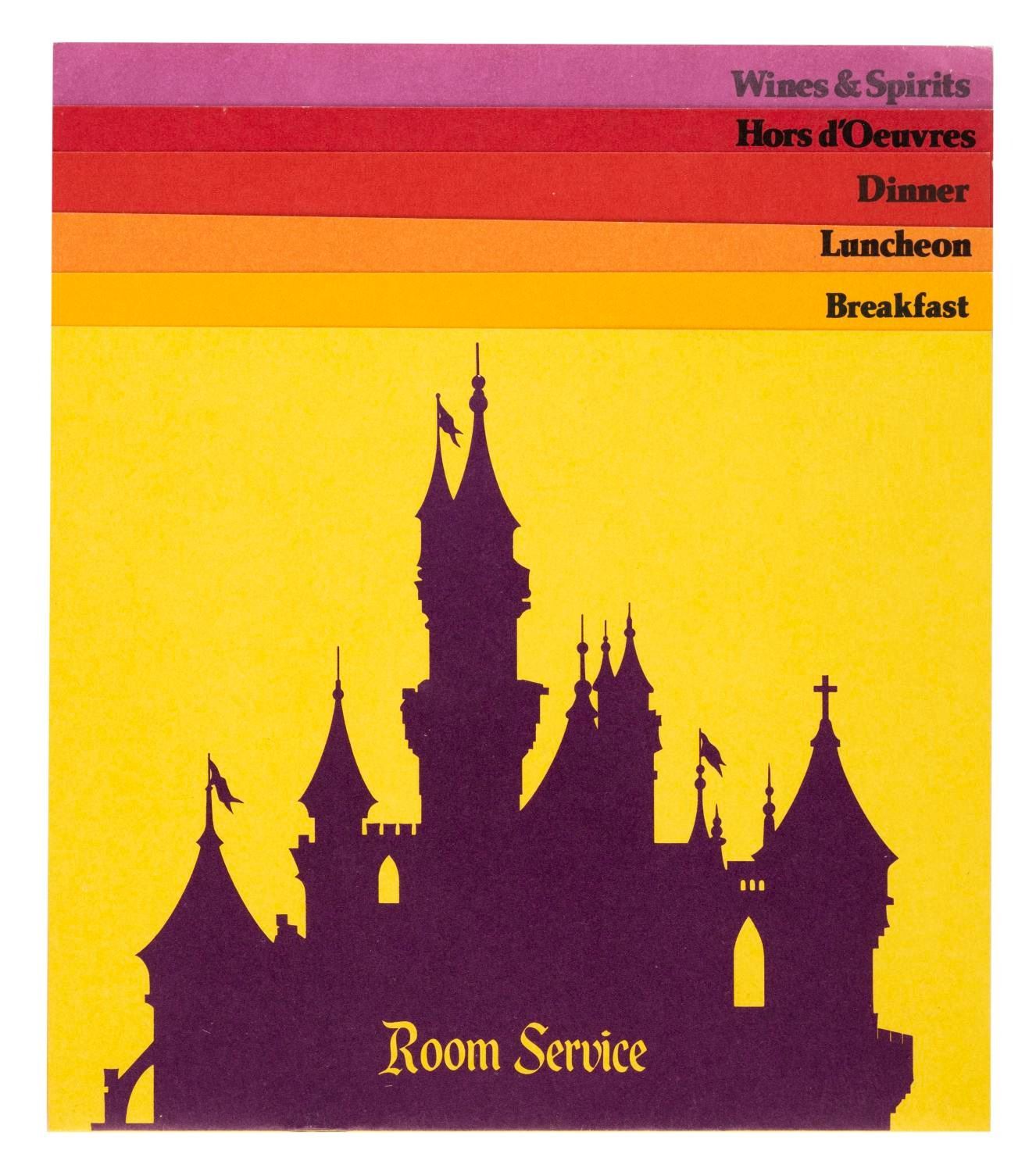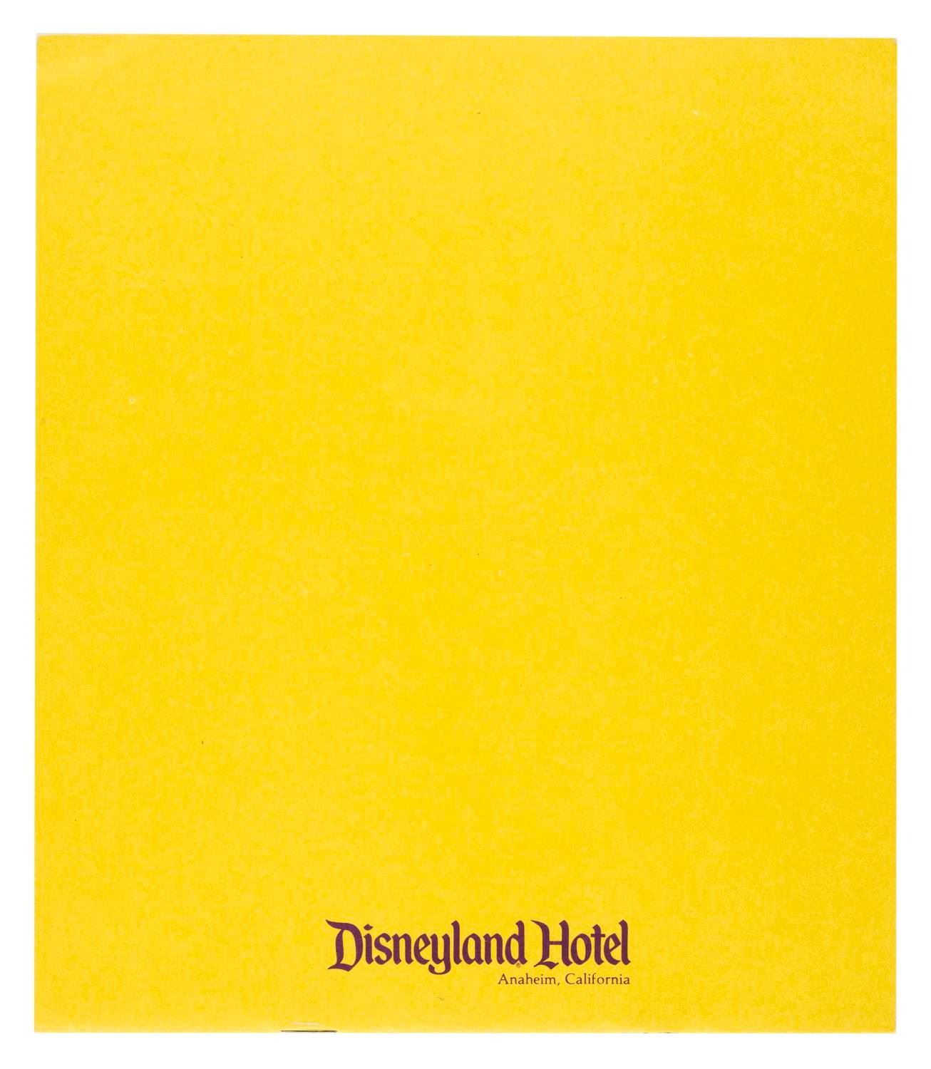 (Disneyland, 1980) A room service menu from the Disneyland Hotel printed in January of 1980. Measuring 8" x 9", the menu is in very good to fine condition.