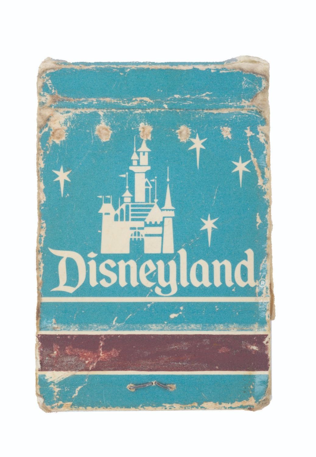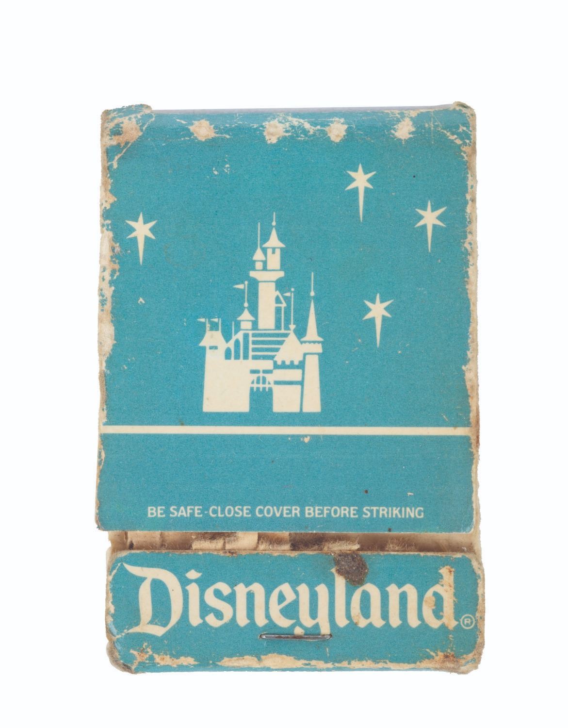(Disneyland, 1980s) A Disneyland matchbook featuring Sleeping Beauty Castle. Measuring 2" x 1", the matchbook is in poor condition with wear throughout and only two matches remaining.