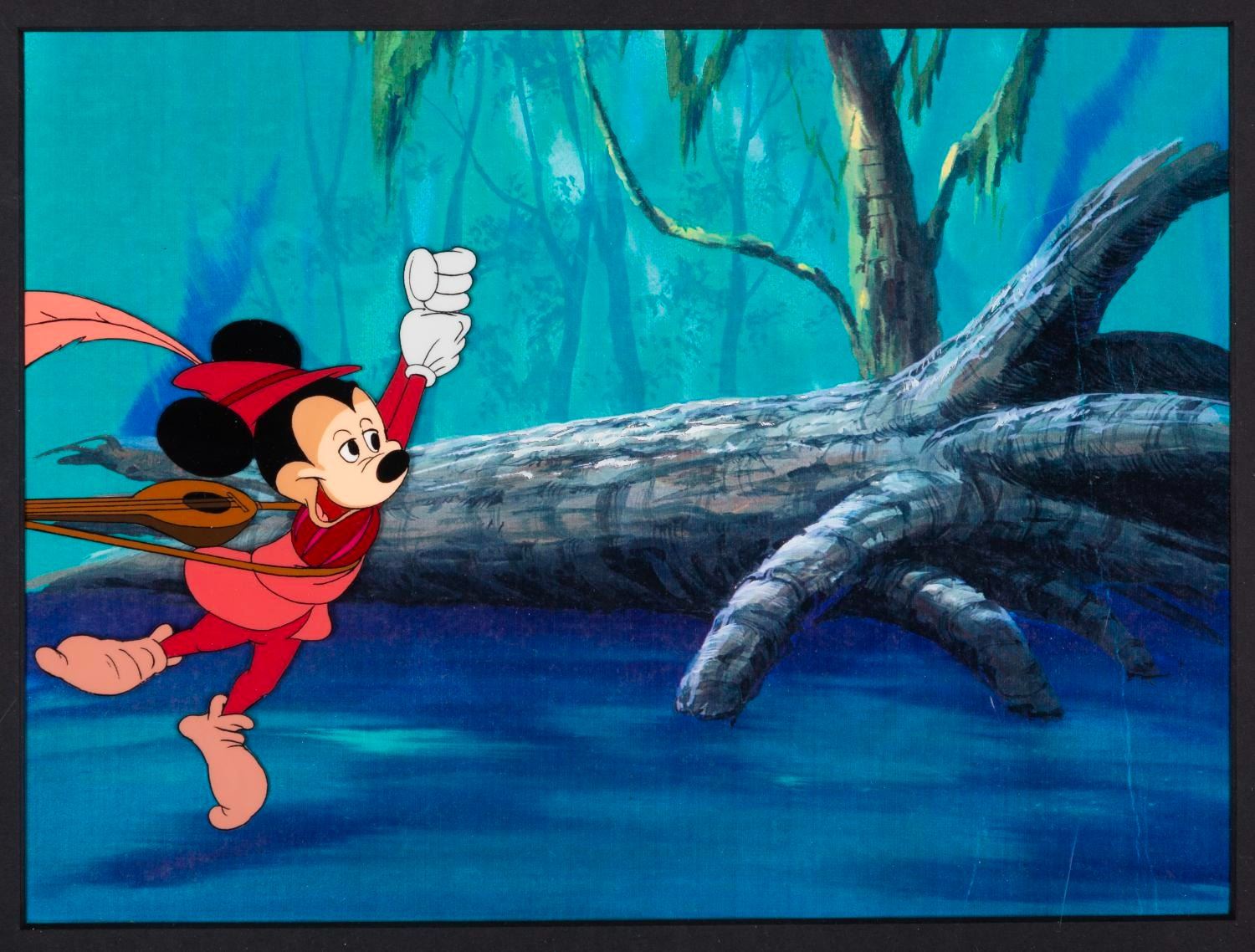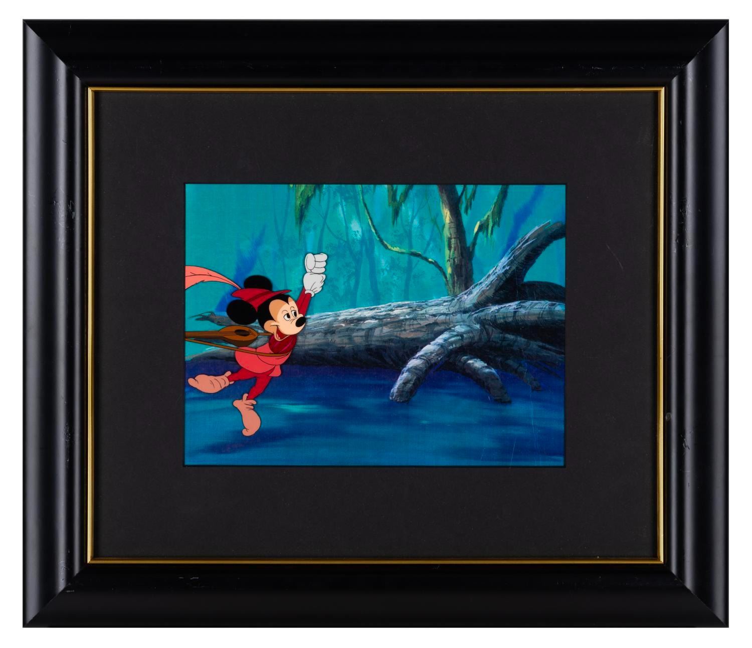 (Coca-Cola, 1980s) An original production cel of Mickey Mouse from a Fanta soda commercial, with a color copy background. With a character image size of 4.25" x 5.5" on a 8.5" x 11.5" visible cel, the piece displays in fine condition.