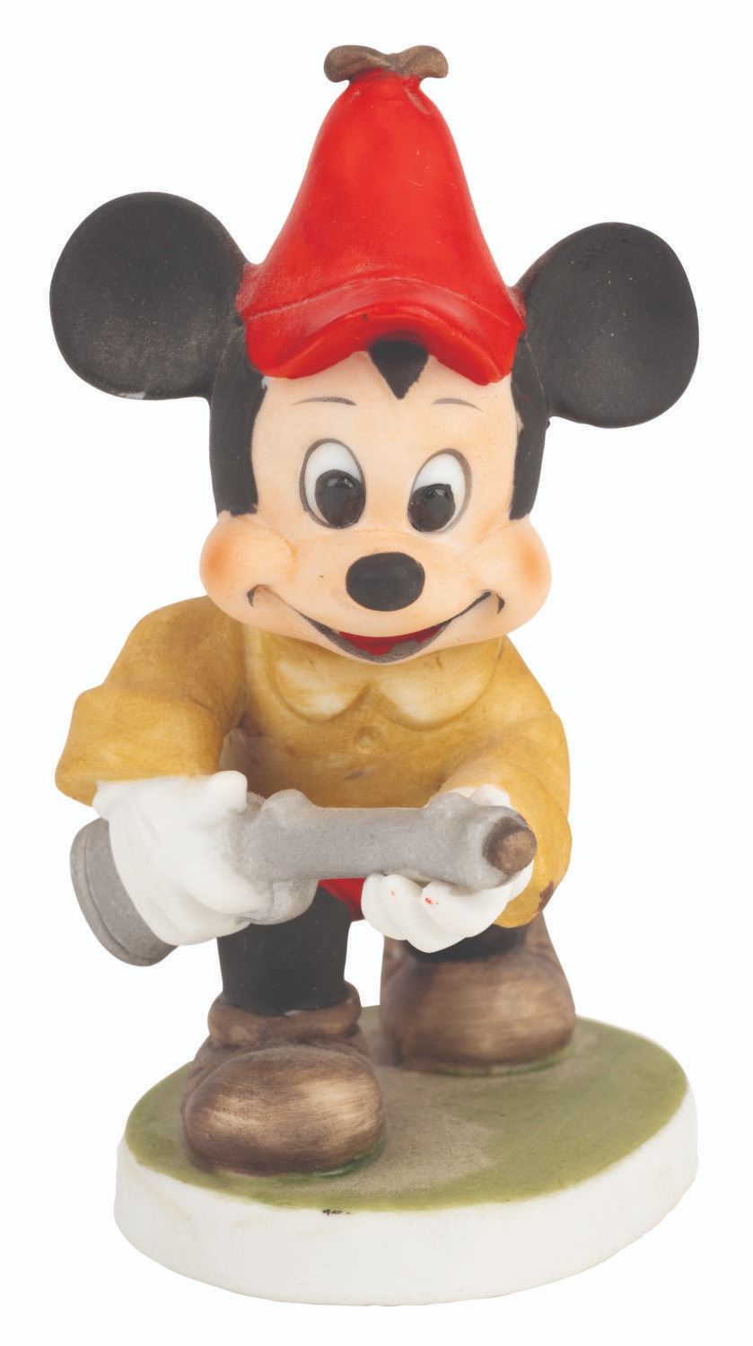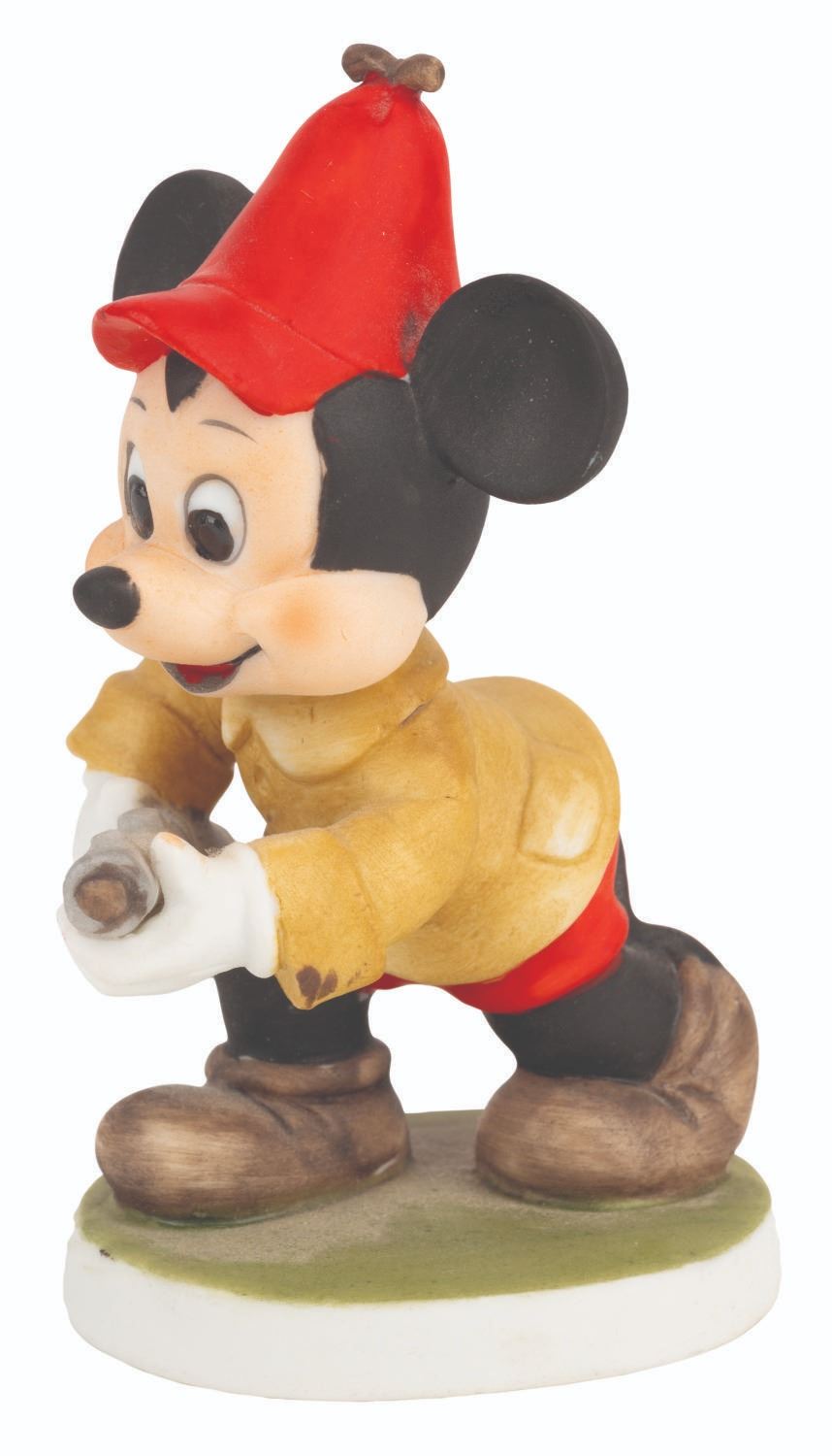 (Disney, 1980s) A porcelain figurine of Mickey Mouse with a hunting rifle inspired by his appearance in the 1939 short film, "The Pointer." Measuring 4.25" tall, the figurine is in good condition with light wear.