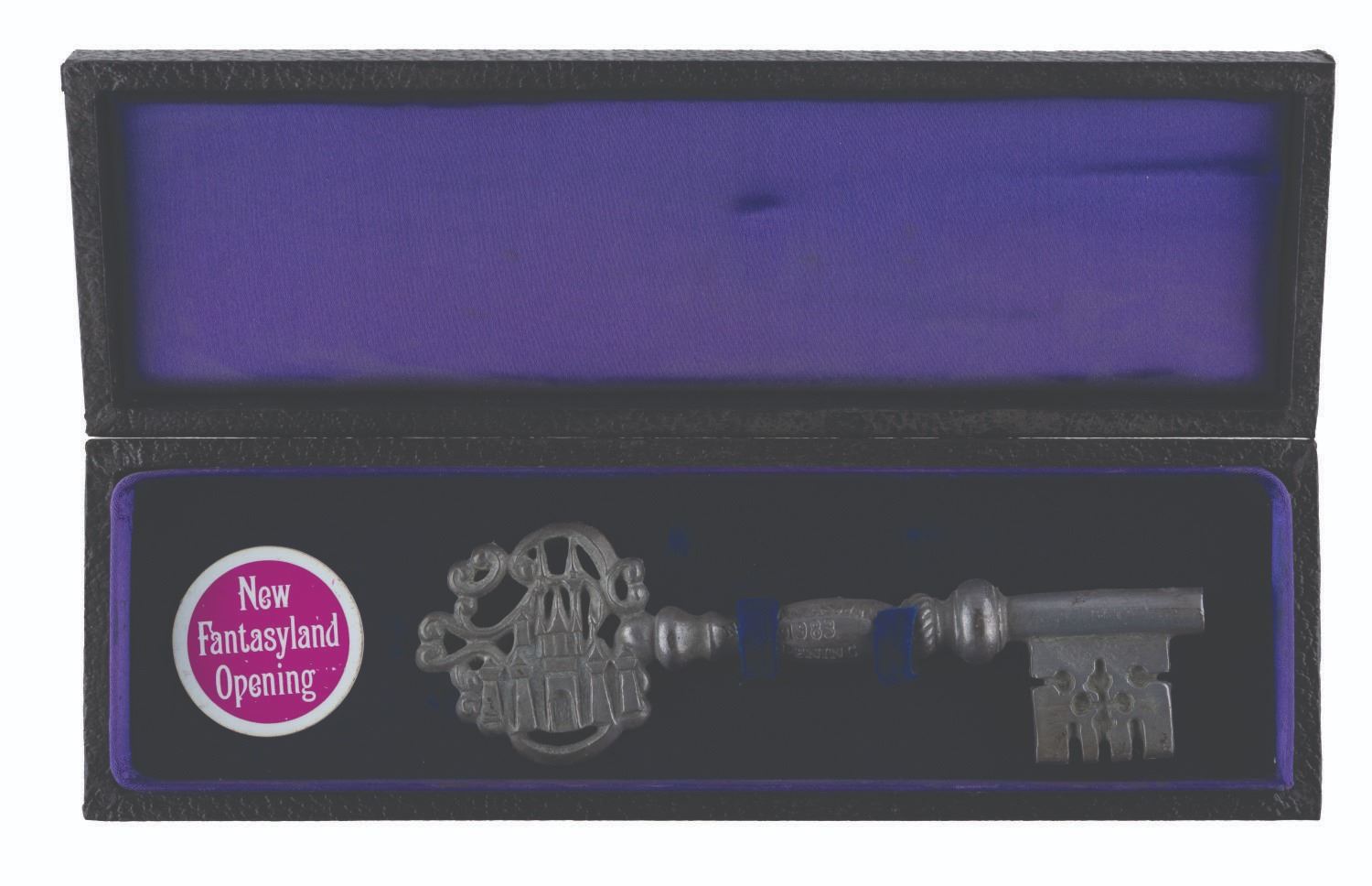 (Disneyland, 1983) A New Fantasyland Cast Member opening key with a black display box. The 6.25" long key and 3" x 9.75" box are in very good condition.