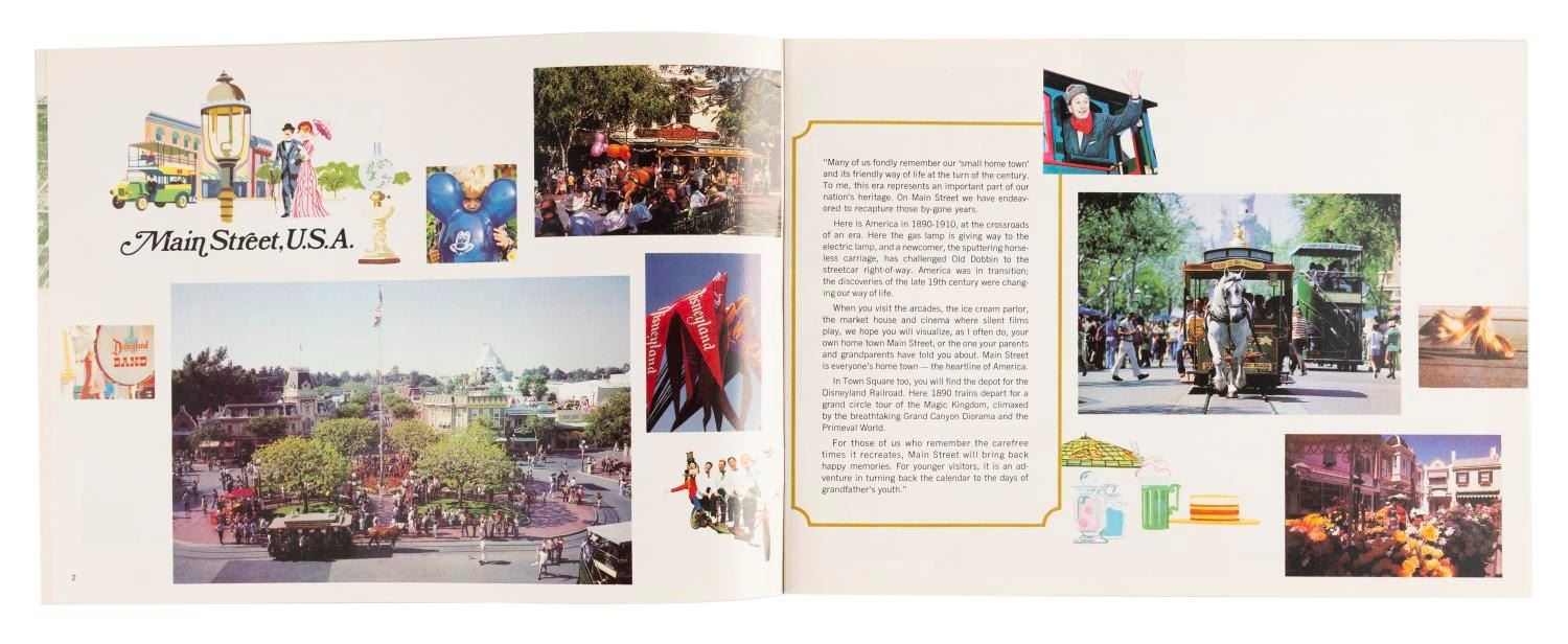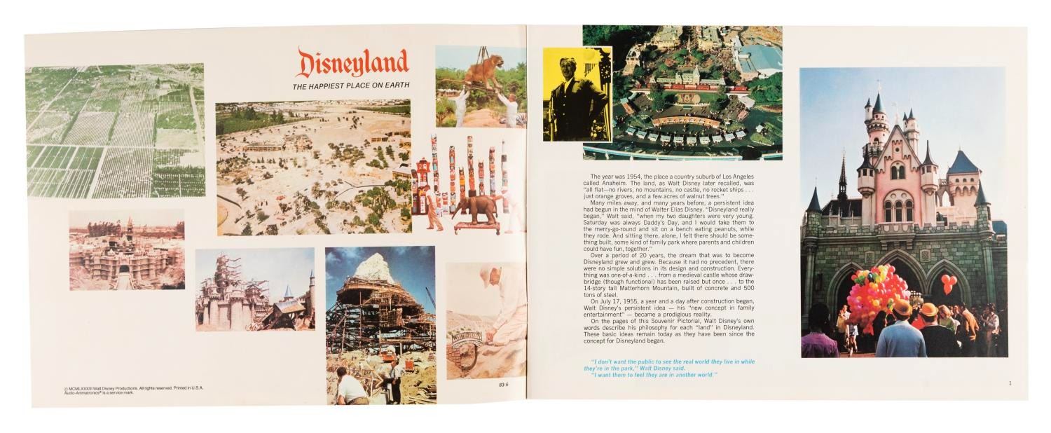 (Disneyland, 1983) A Walt Disney’s Disneyland pictorial souvenir book featuring colorful photos from around the Park. Measuring 8.75” x 11.75”, the book is in very good condition with light creases and edge wear.