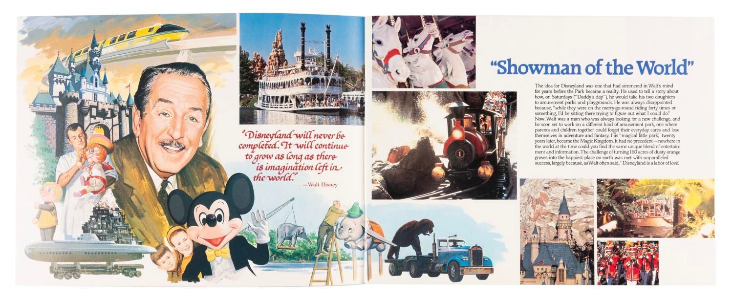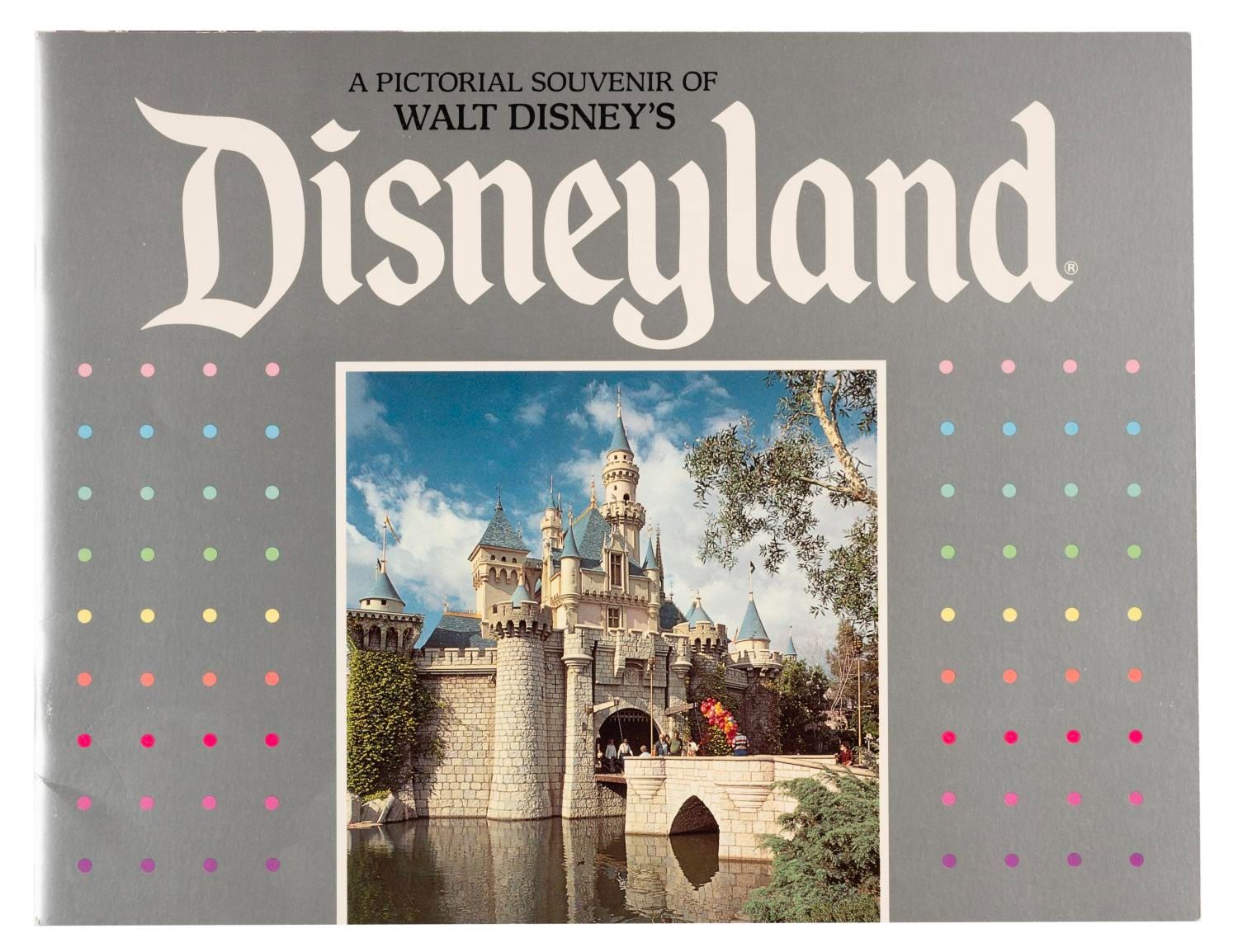 (Disneyland, 1984) A Pictorial Souvenir of Walt Disney’s Disneyland guidebook featuring colorful photos from around the Park. Measuring 8.75” x 11.5”, the book displays in very good condition with light scratches, creases, and edge wear.