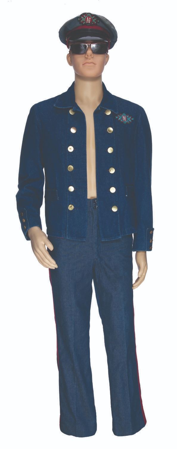 (Walt Disney World, 1970s-80s) A costume worn by 20,000 Legues Under the Sea Attractions Hosts at Walt Disney World. Included are a hat, shirt, and pair of pants. The hat is labeled 7 ¼ "," the short is "LX", and the pants are “26x28”. Each piece is in fair-to-good condition exhibiting fading, pilling, loose threads, and wear from original cast use, handling, and age of materials.