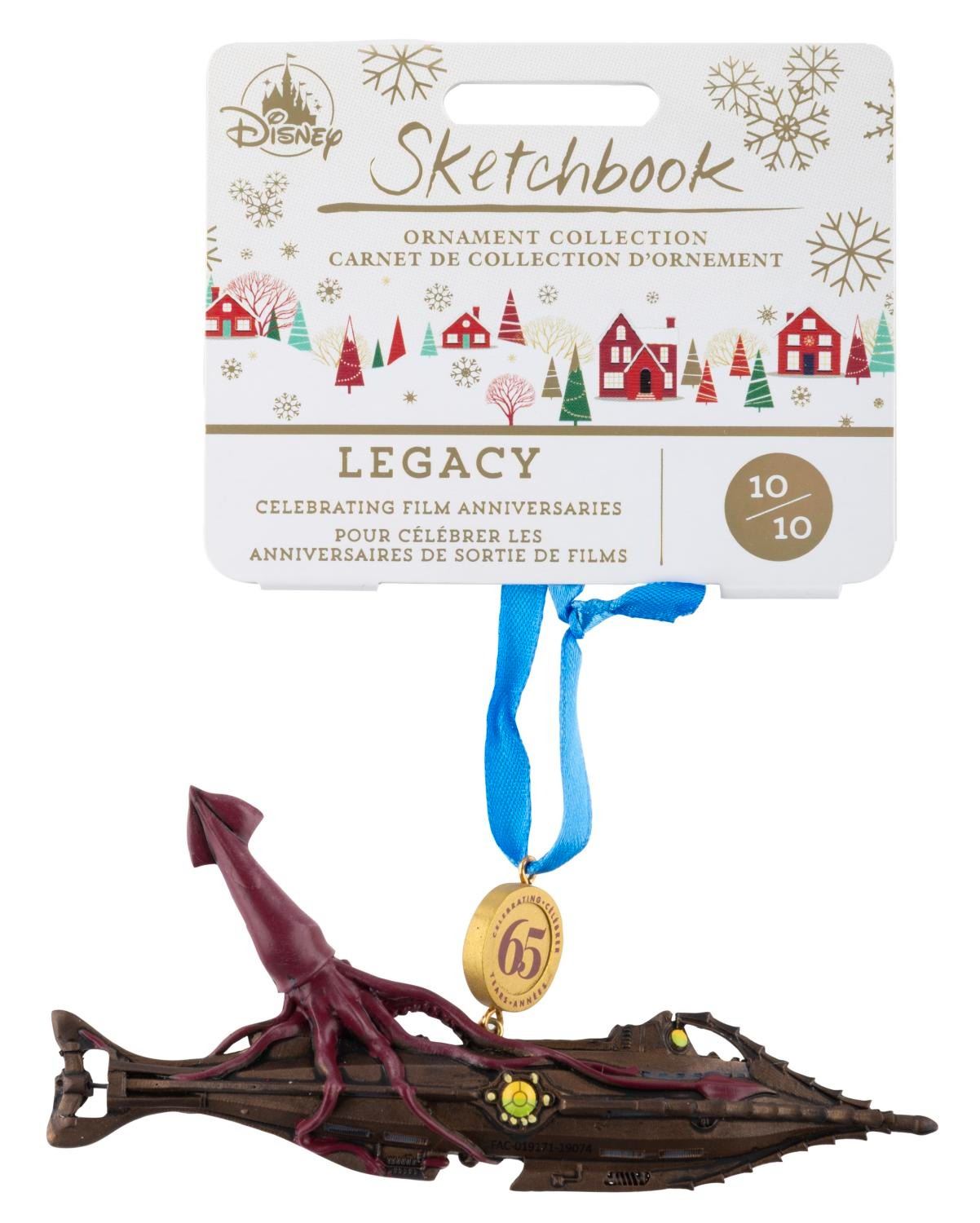 (Disney, 2019) A Sketchbook Nautilus Christmas ornament commemorating the 65th anniversary of "20,000 Leagues Under the Sea." Measuring 2" x 5", the ornament is in fine condition on the original card.