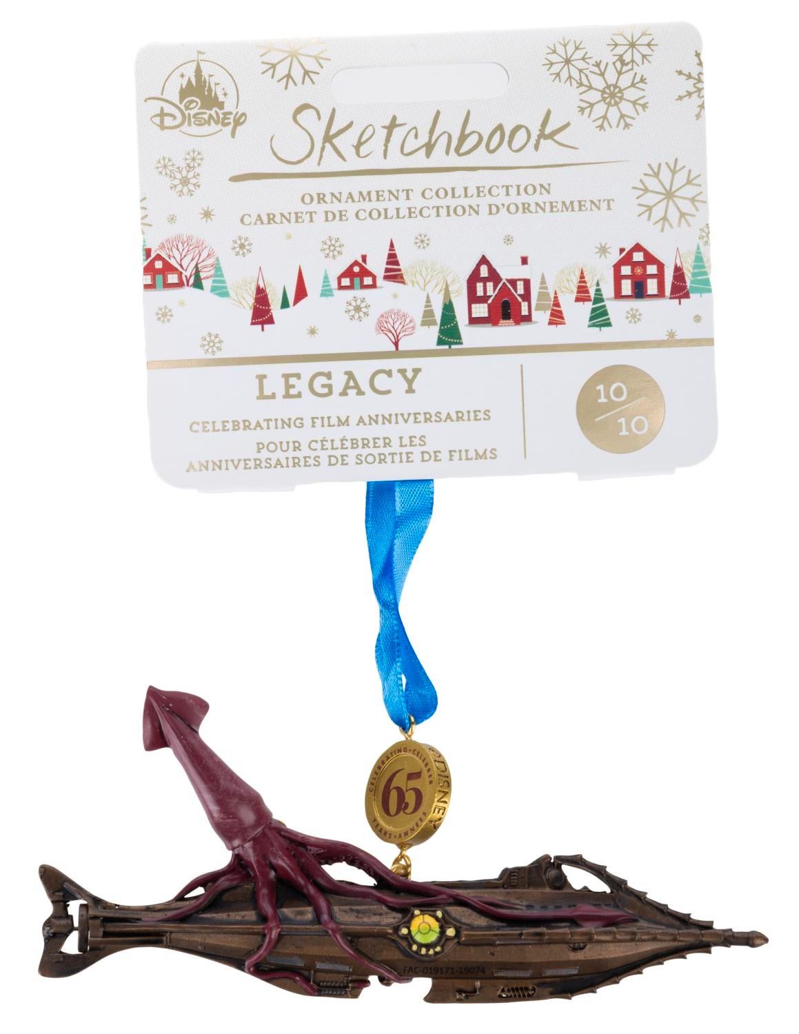 (Disney, 2019) A Sketchbook Nautilus Christmas ornament commemorating the 65th anniversary of "20,000 Leagues Under the Sea. " Measuring 2 " x 5 ", the ornament is in fine condition on the original card.
