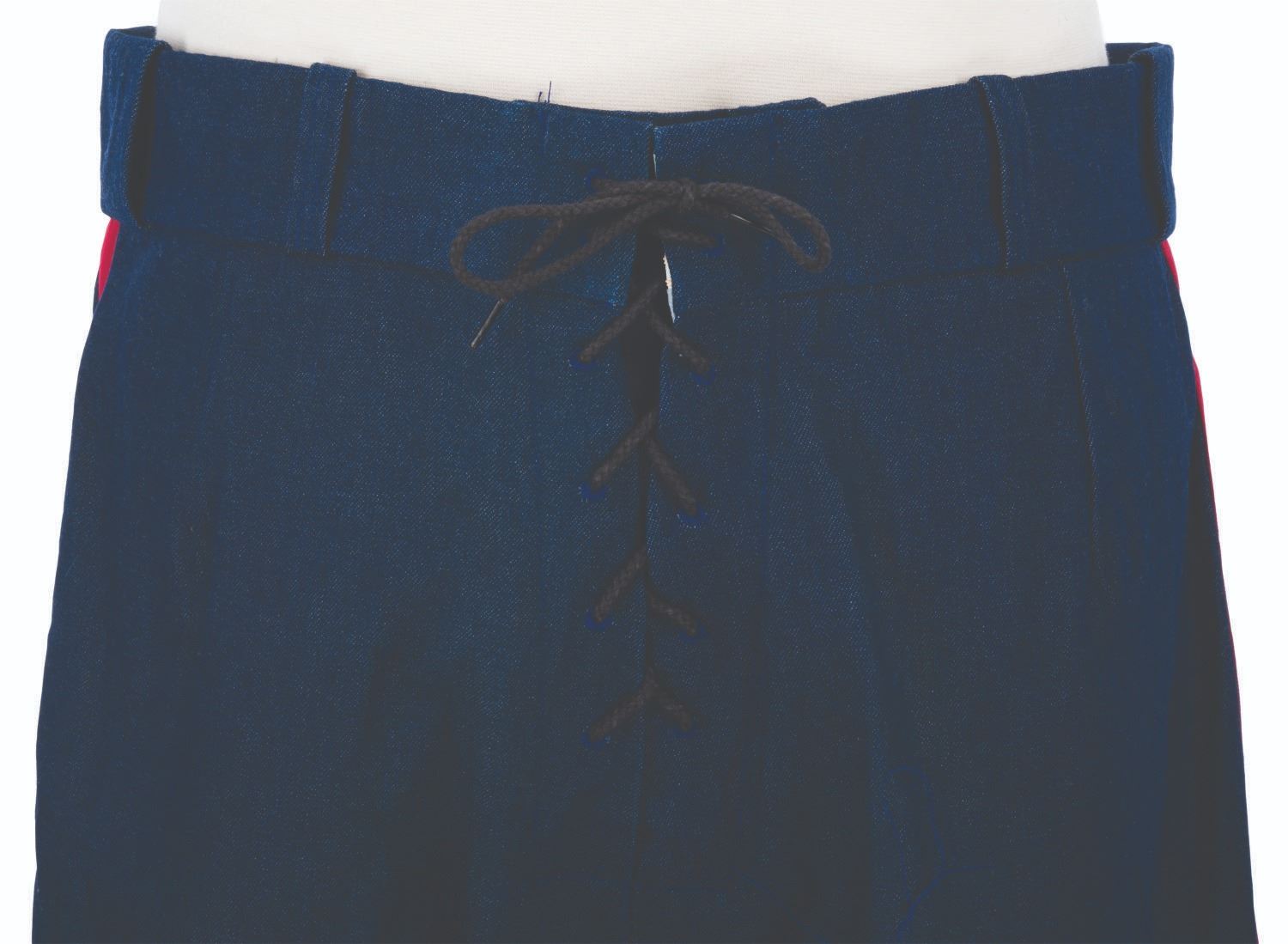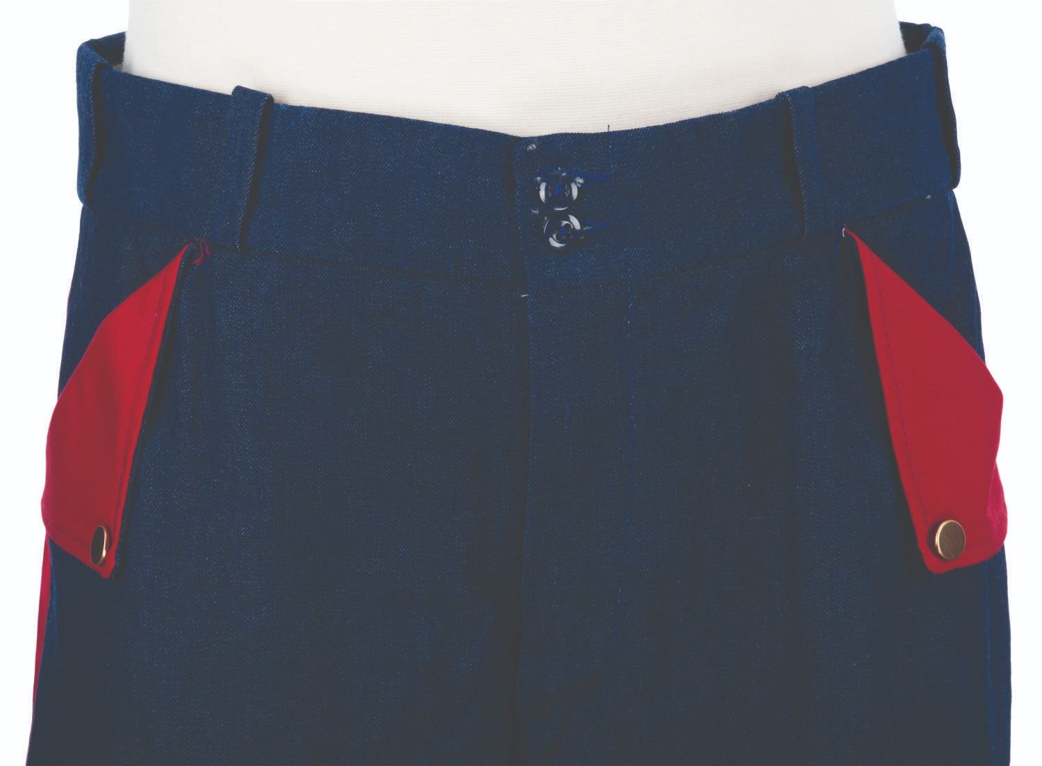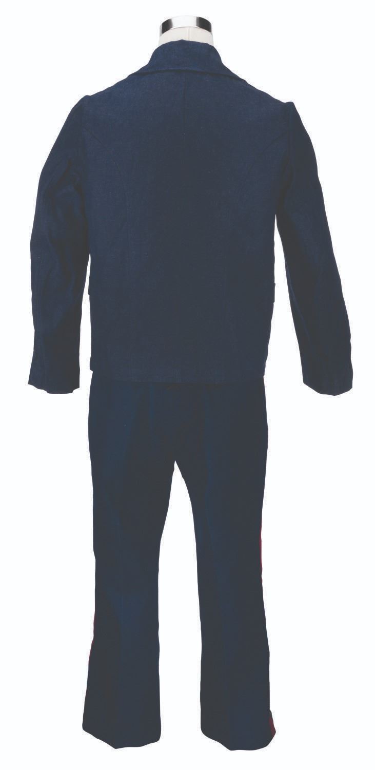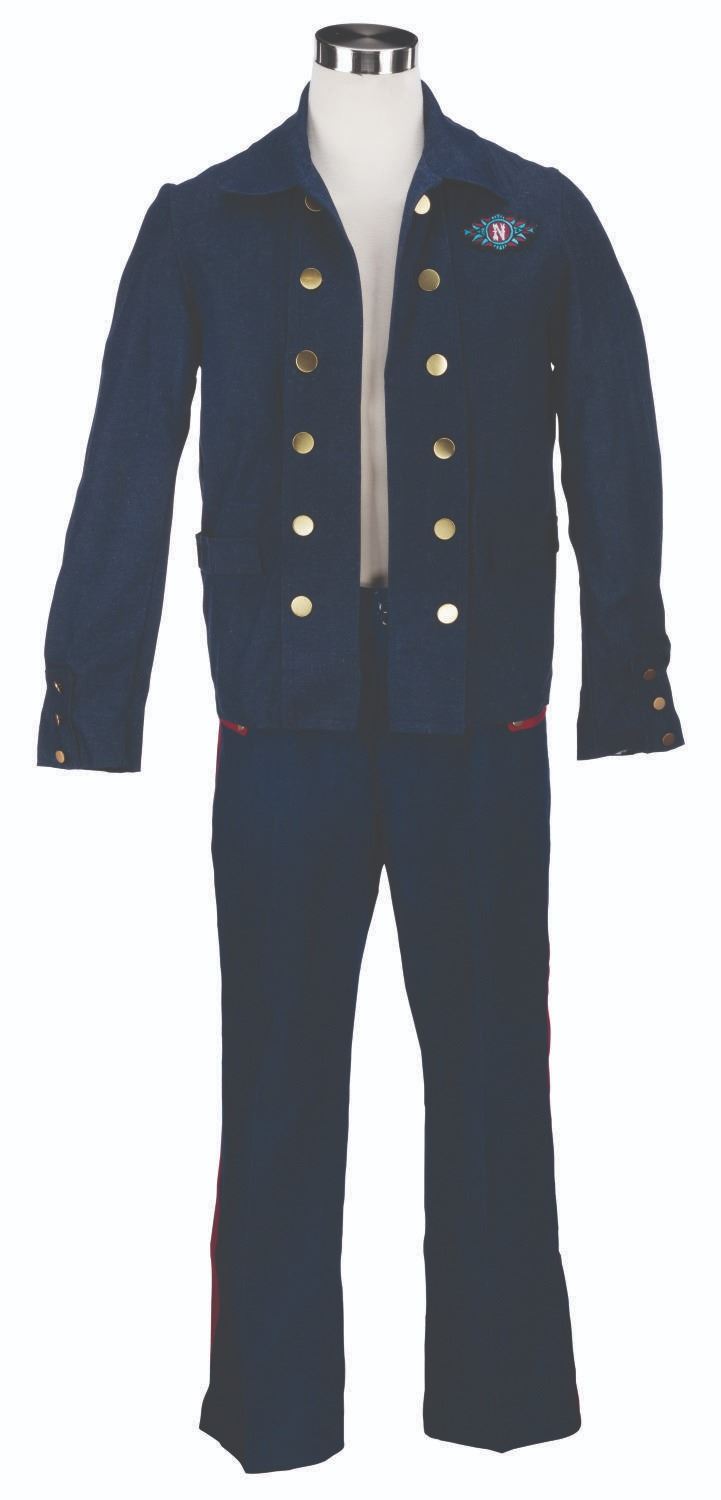 (Walt Disney World, 1990s) A rare Cast Member costume from 20,000 Leagues Under the Sea: Submarine Voyage at Walt Disney World. Included are a denim jacket with a stylized Nautilus "N" patch and denim pants with red accents. The jacket is labeled a size 40 and the pants 38x30, both in very good condition with light pilling and wear from Park use.