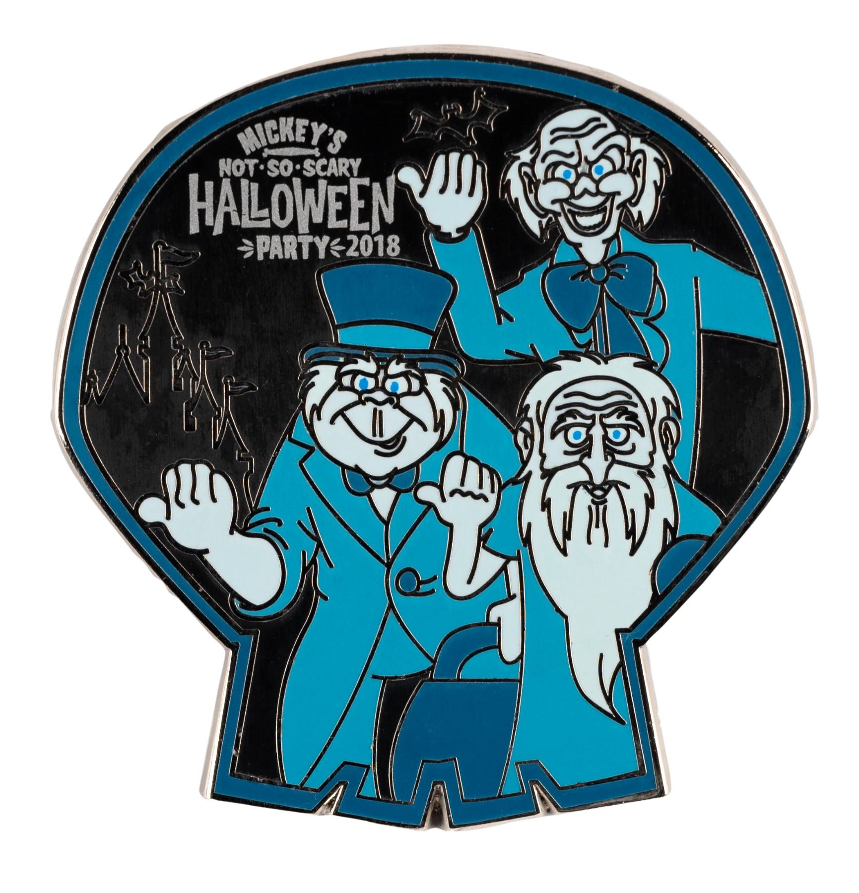 (Disneyland, 2018) A 2018 Mickey’s Not-So-Scary Halloween Party limited edition pin featuring the Hitchhiking Ghosts from The Haunted Mansion. Measuring 1.75” x 1.75”, the pin is in very good condition with light wear.