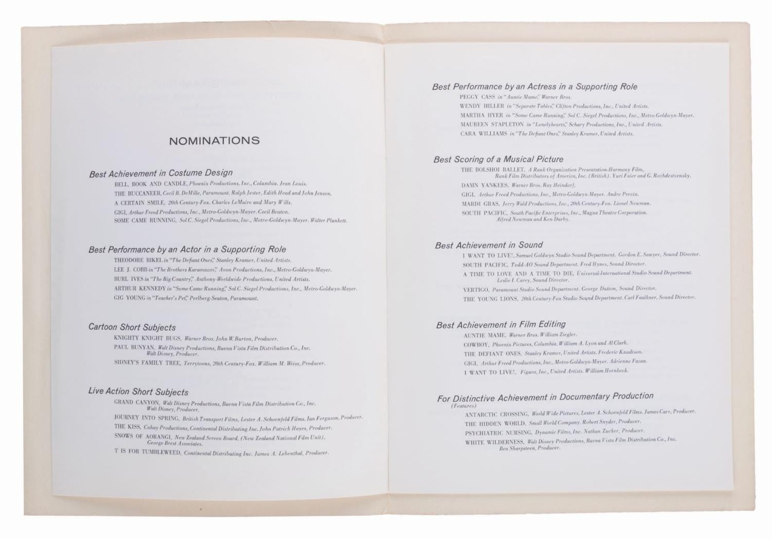 A 31st Academy Awards Program from 1959.