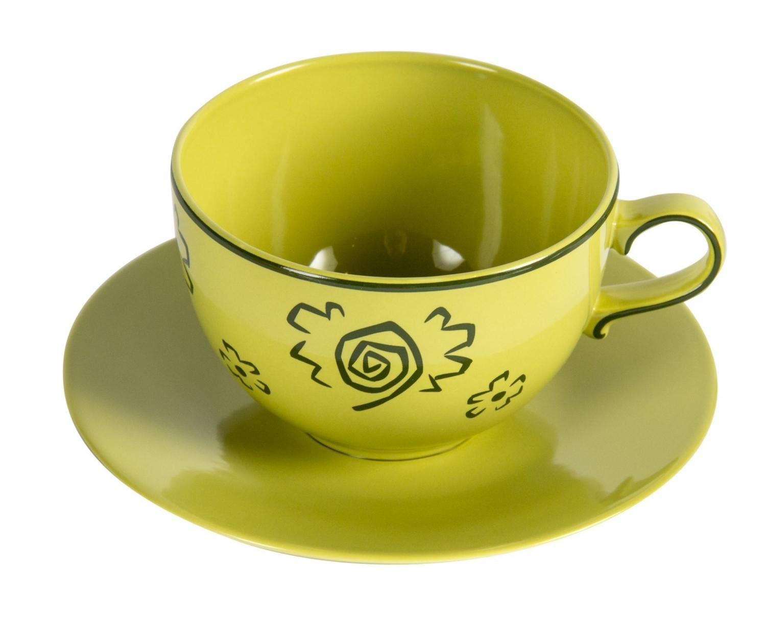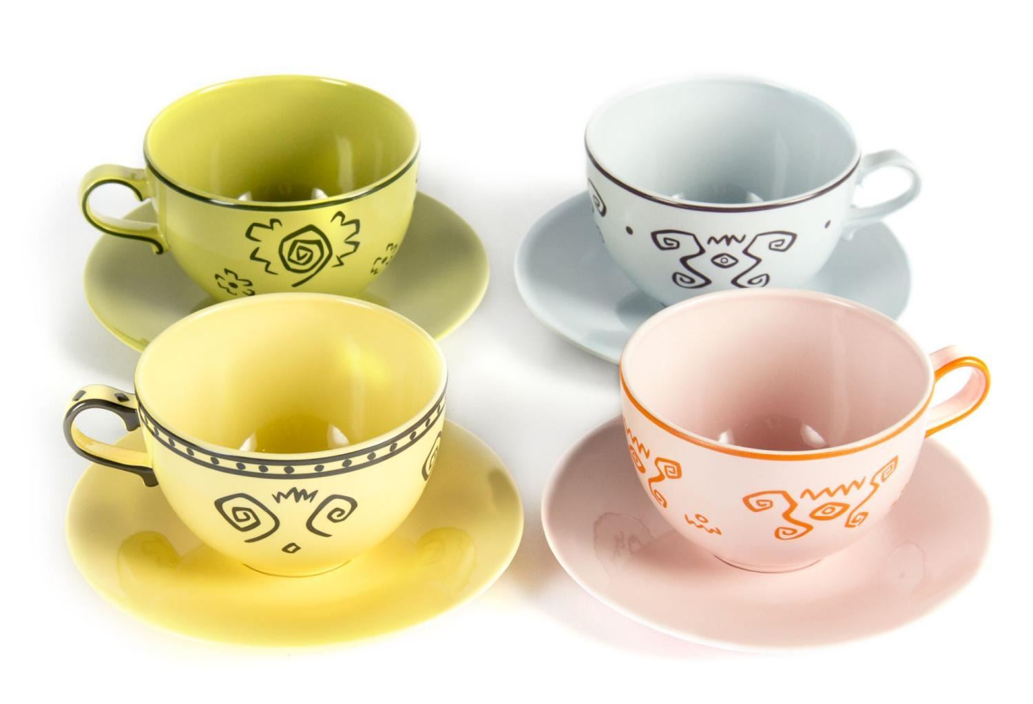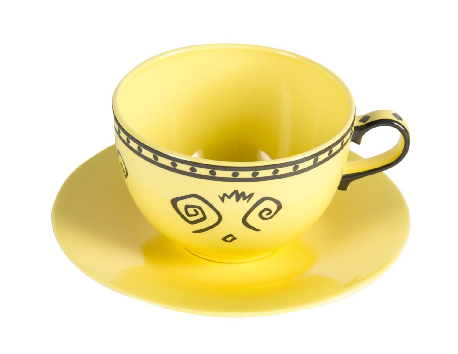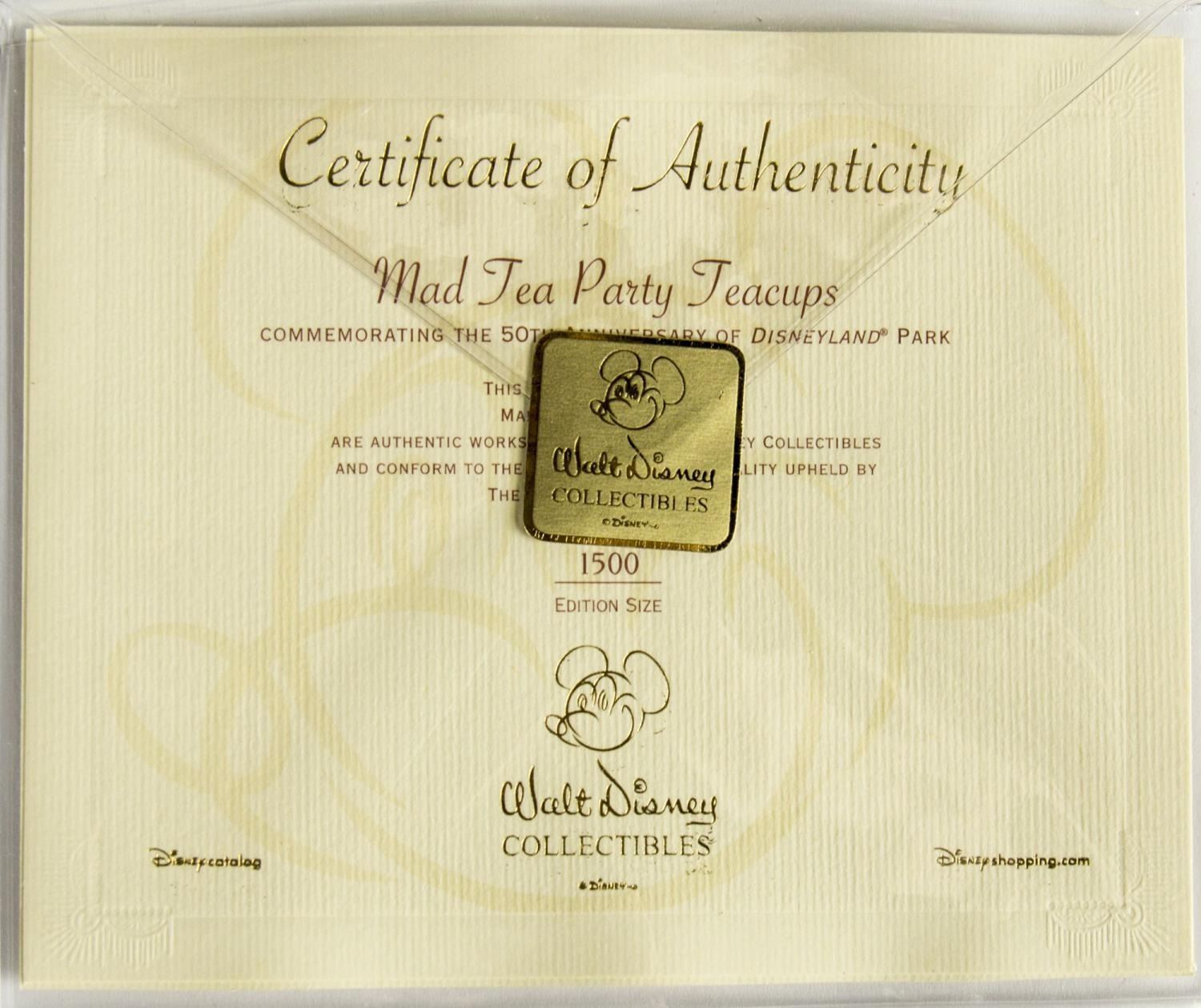 (Disneyland, 2005) A four-piece teacup and saucer set designed by Kevin Kidney and Jody Daily for Disneyland's 50th anniversary. The limited edition 1500 set features Imagineer Bruce Bushman's original designs for the attraction's 1955 opening. Measuring from the 2.5" tall and 3.75" teacups to the 5.75" diameter saucers, the set is in fine condition with the original 12.25” diameter decorative box.