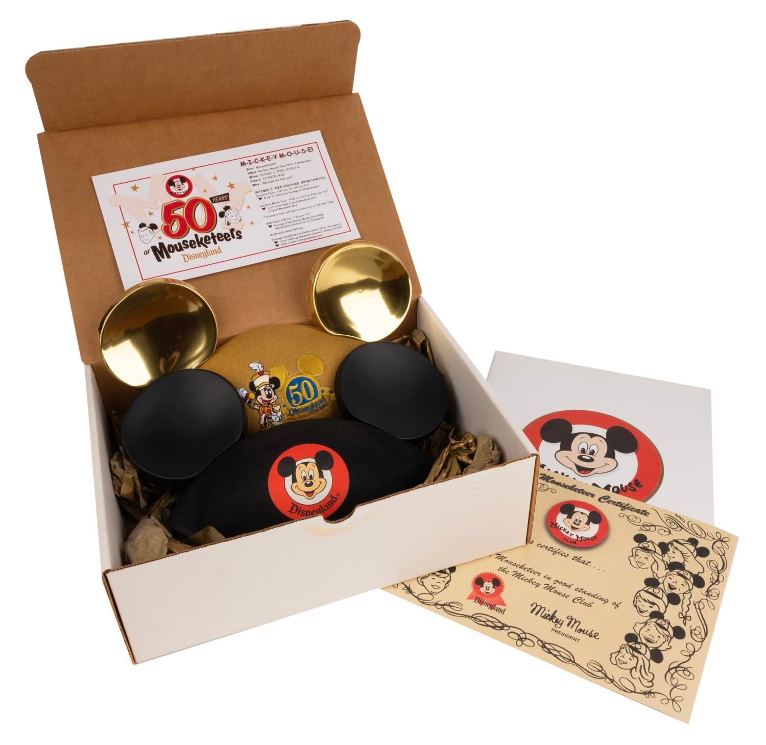 (Disneyland, 2005) A large, boxed press kit for the "50 Years of Mouseketeers at Disneyland" event held in the Park on October 3, 2005. Included are a letter, fact sheet, unused Mouseketeer Certificate, press folder with two 8" x 10" photos and news release, and of course two Mouse Ear hats, one standard and one golden 50th anniversary pair embroidered with the name "Mandie." Measuring various sizes, the materials are all in fine condition in the 4” x 9.5” x 13” box.