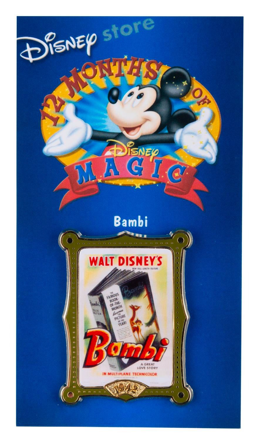 (Disney Store, 2002) A "Bambi" pin of the original movie poster, released as part of the Disney 12 Months of Magic pins series. The pin is in fine condition on the original card.