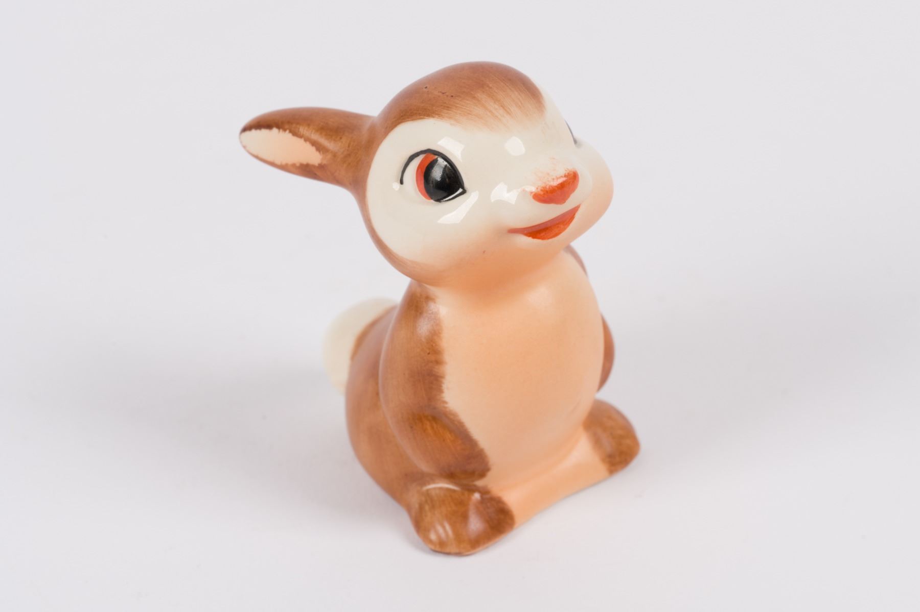 23. A “Bambi” Thumper Ceramic Figurine by Goebel. (Goebel, 1940s-50s) A porcelain figure of Thumper from “Bambi,” manufactured by Goebel of Germany. Standing 2.5" tall, the figurine is in fine condition. $30 - $40