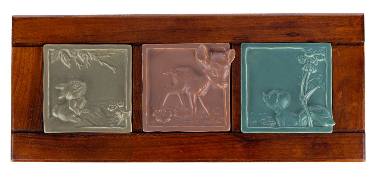 (Disney, 2006) A Bambi's Friends ceramic tile wall hanging decoration. This tribute to "Arts and Crafts Style" was designed by Jody Daily and released in a limited edition of 500. Measuring 16.75"x7", this piece is in fine condition.