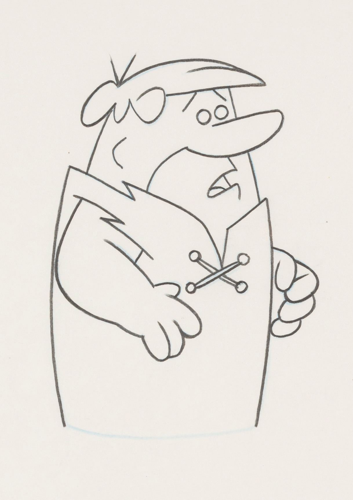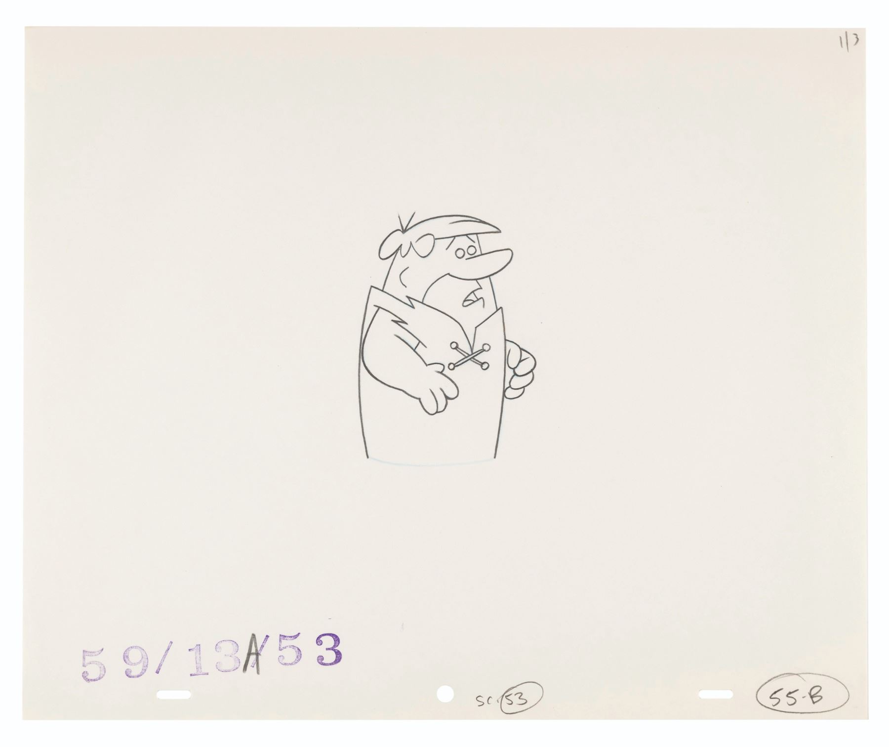 (Hanna-Barbera, 1972-73) An original production drawing of Barney Rubble from “The Flintstones Comedy Hour.” Measuring 10.5” x 12.5” with a character image size of 4” x 2.75”, the graphite drawing is in very good condition with light edge wear and creasing from production use and light discoloration from age.