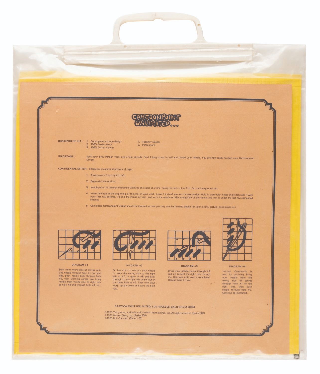 (Cartoonpoint Unlimited, 1975) A needlepoint pattern of Beany. Measuring 12” x 12”, the pattern is in fine condition in the original package.