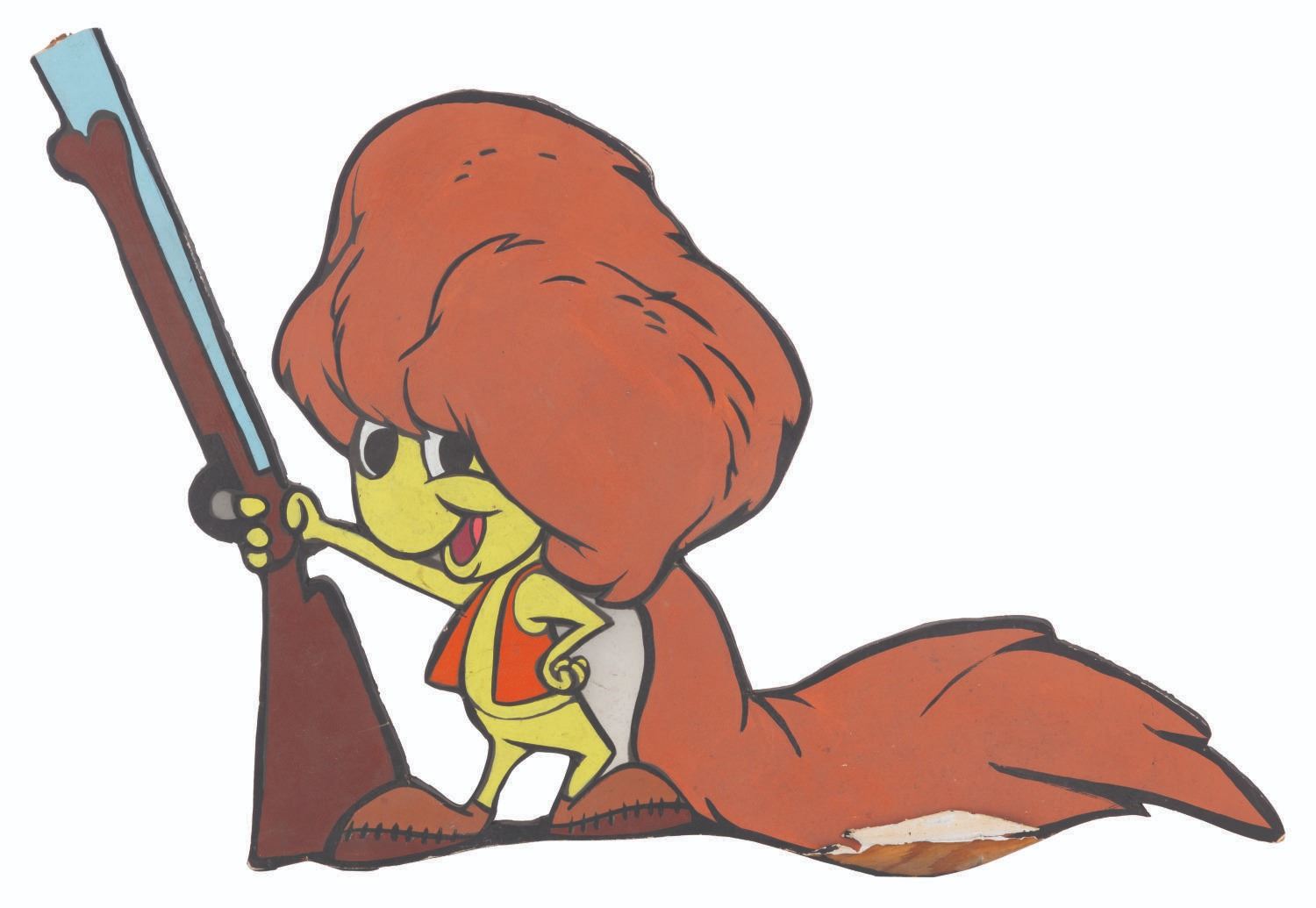 (Clampett, 1960s) A handmade wooden cut-out of Davey Cricket from “Beany and Cecil.” Measuring 11” x 17” and 0.25" thick, the display is in fair condition with peeling, scratches, wear, discoloration from age, and the top of Davey’s gun broken and missing.