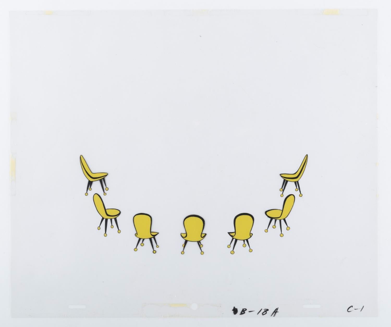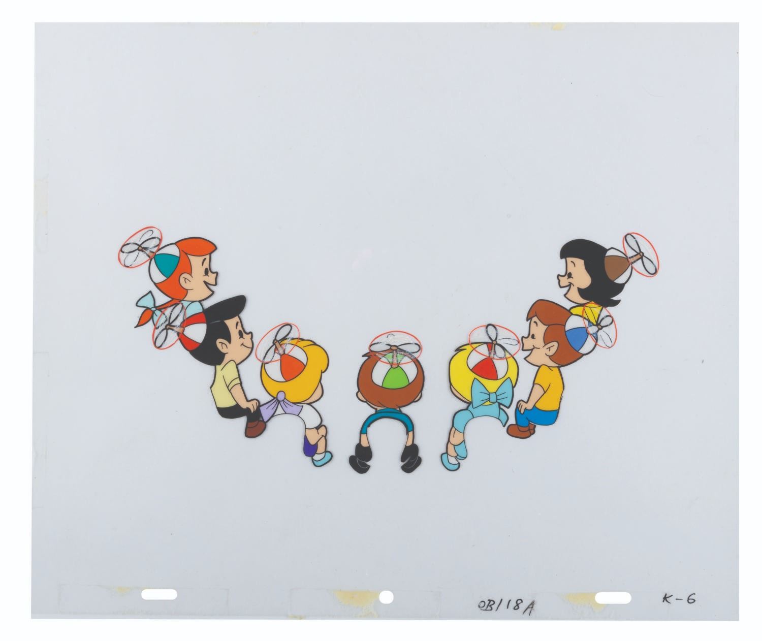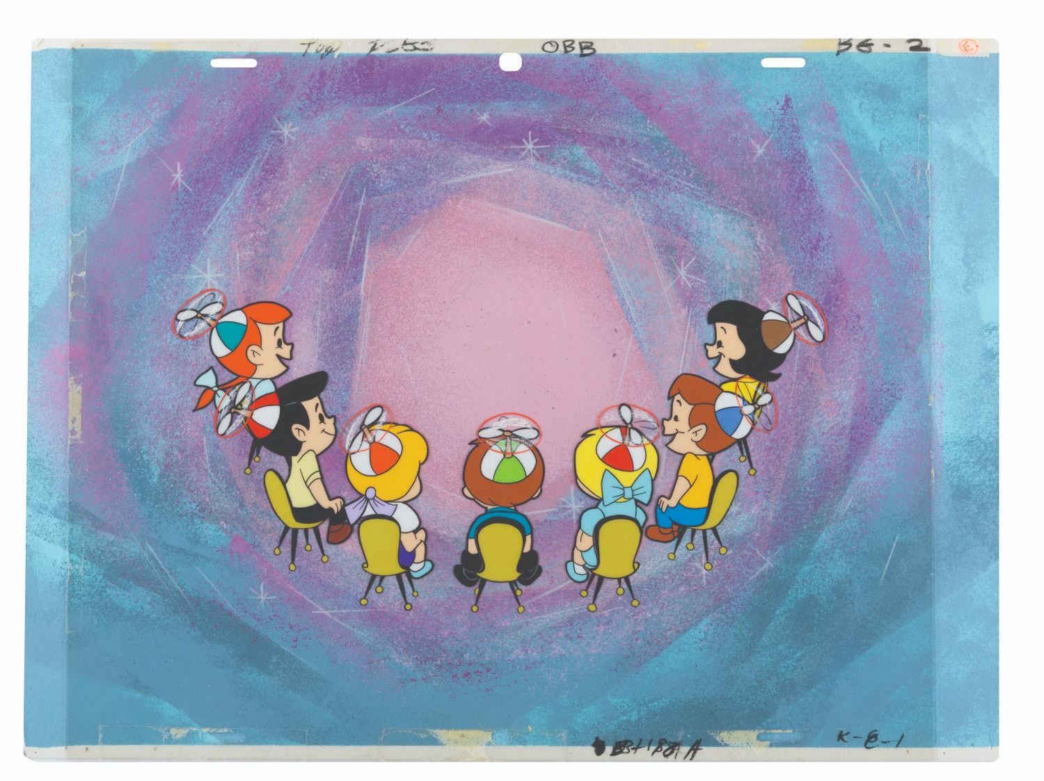 (Clampett, 1962) An original multi-layer production cel and matching background from the “Beany and Cecil” opening title sequence. With a character image size of 4.75” x 9.5” on a 10.5” x 12” cel and 10.5” x 14” background, the piece displays in fine condition with tape residue on the edges of the cel layers and corner pinholes to the background from production use.