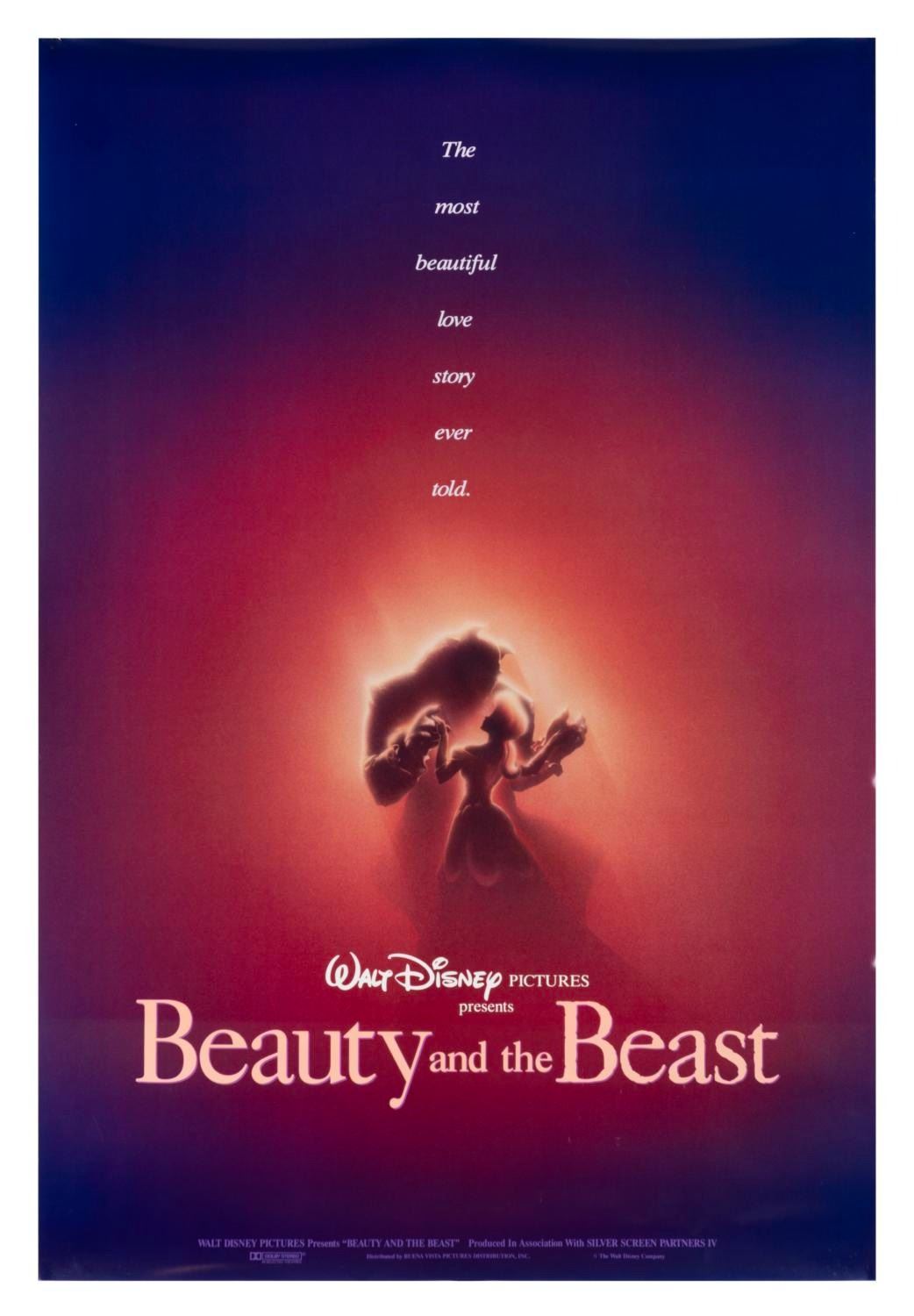 (Disney, 1991) A one-sheet for the original theatrical release of "Beauty and the Beast." Measuring 27" x 40", the poster displays in very good condition with a pair of very faint scuffs in left and right edges.