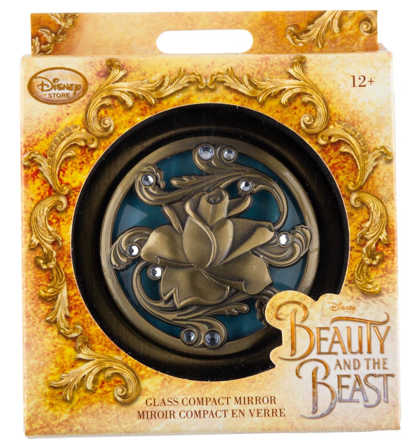 (Disney Store, 2000s) A "Beauty and the Beast" compact mirror featuring a rose design on the front. Measuring 3" in diameter, the compact mirror is in fine condition.