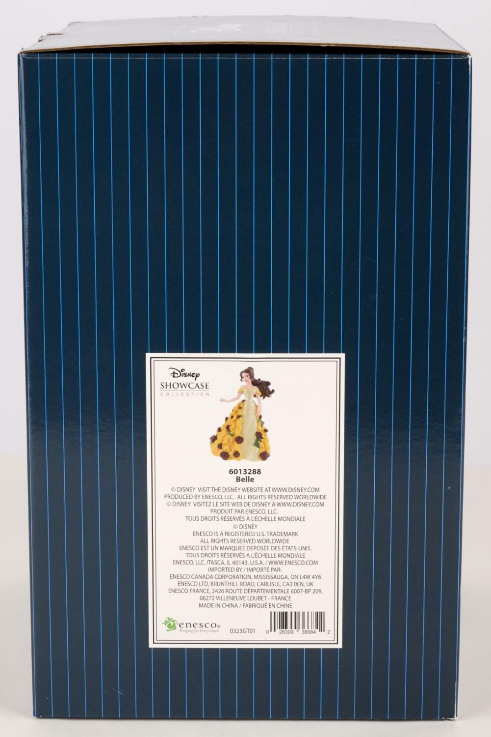 (Enesco, 2023) A Disney Showcase Collection Botanical ‘Couture de Force’ series figurine of Belle from Disney’s “Beauty and the Beast.” Measuring 6" x 5" and 8.5" tall, the resin figurine is in fine condition and comes with the original 8" x 7.25" x 11.25" box.