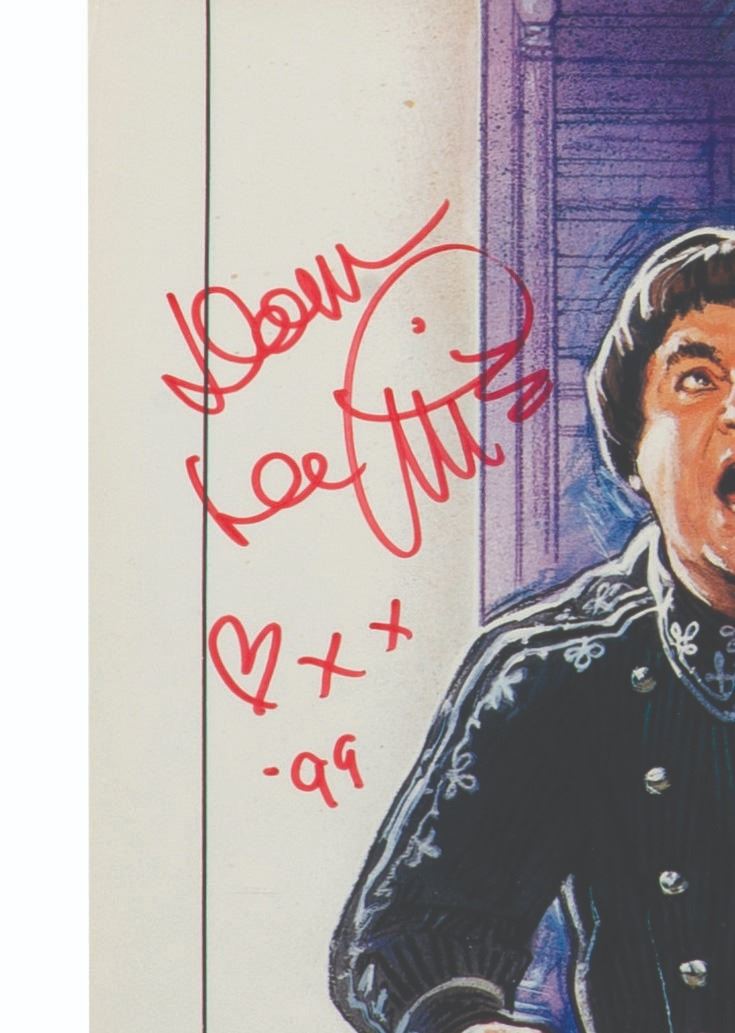(Universal, 1982-1999) An original one-sheet for The Best Little Whorehouse in Texas, signed by actor Dom DeLuise in 1999. DeLuise portrayed Melvin P. Thorpe, the television personality set on exposing the Chicken Ranch. Measuring 27"x40', the poster with signature is in good condition, with light wear overall, and wear along original fold lines including slight splitting at center points.