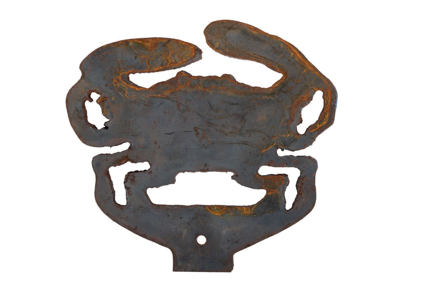 (Disneyland, 1962-82) An original crab-shaped metal target from the Big Game Safari Shooting Gallery in Adventureland. The target measures 7.25" tall and 7.75" at its widest point. It is in good condition, with and oxidation throughout and wear from Park use.